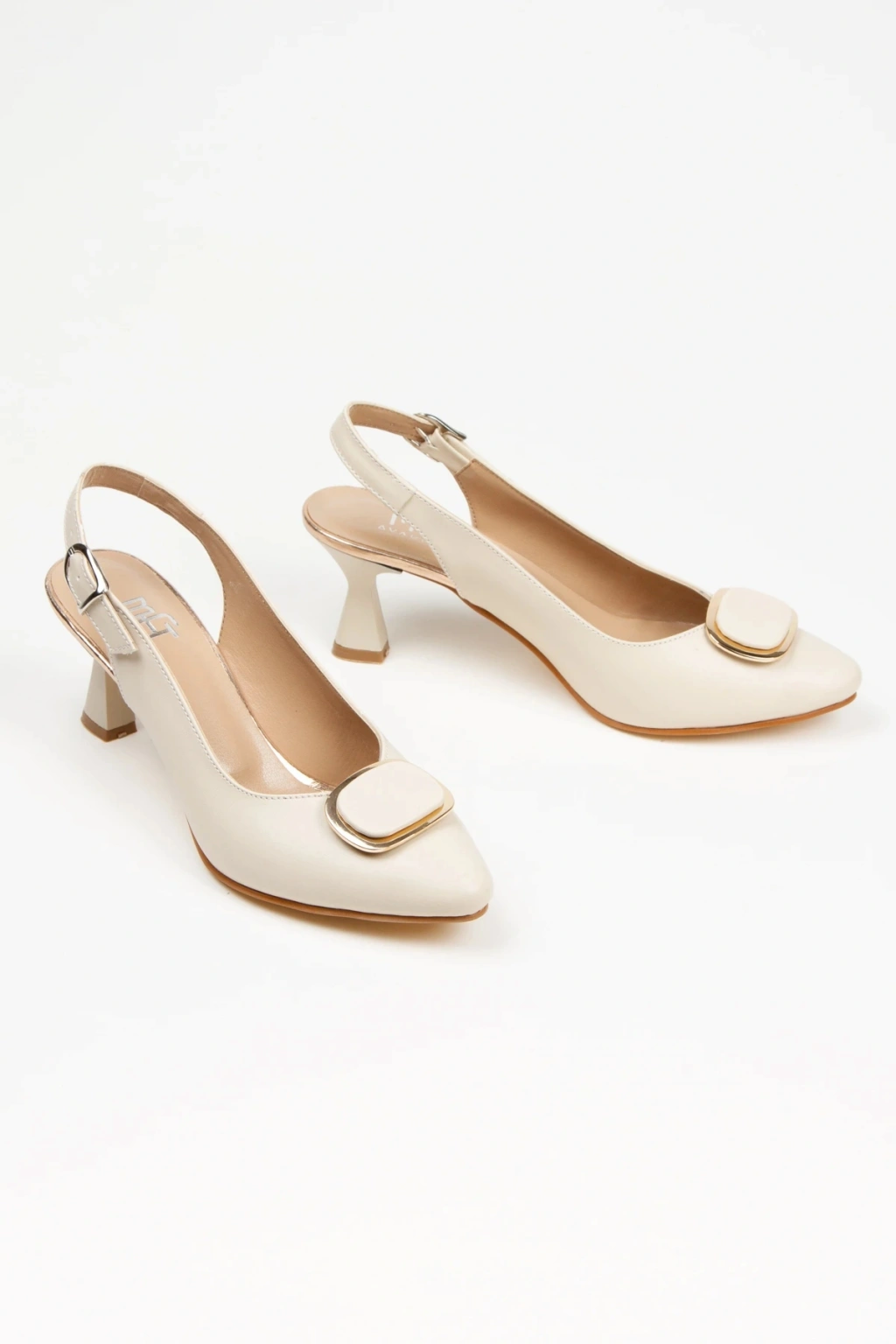 Kadın Bej-ten Suni Deri Cilt Arkası Açık 6 Cm Ince Topuklu Şık Toka Detaylı Ve Rahat Stiletto
