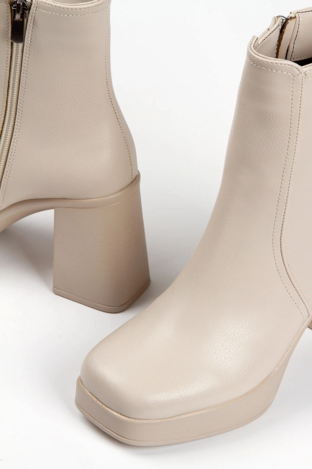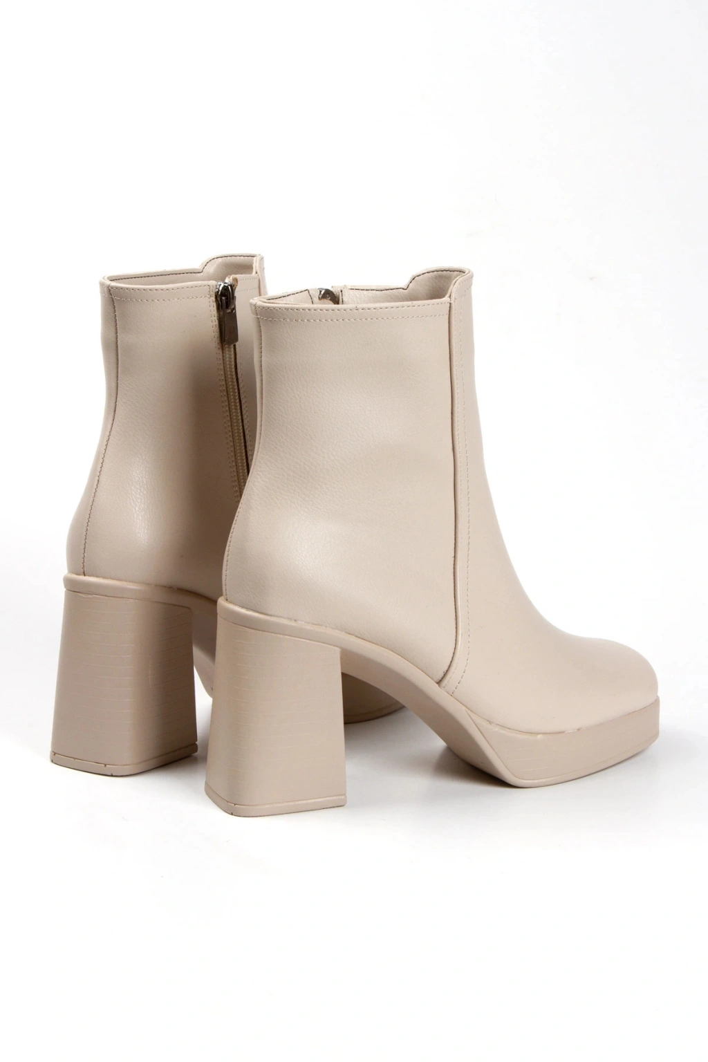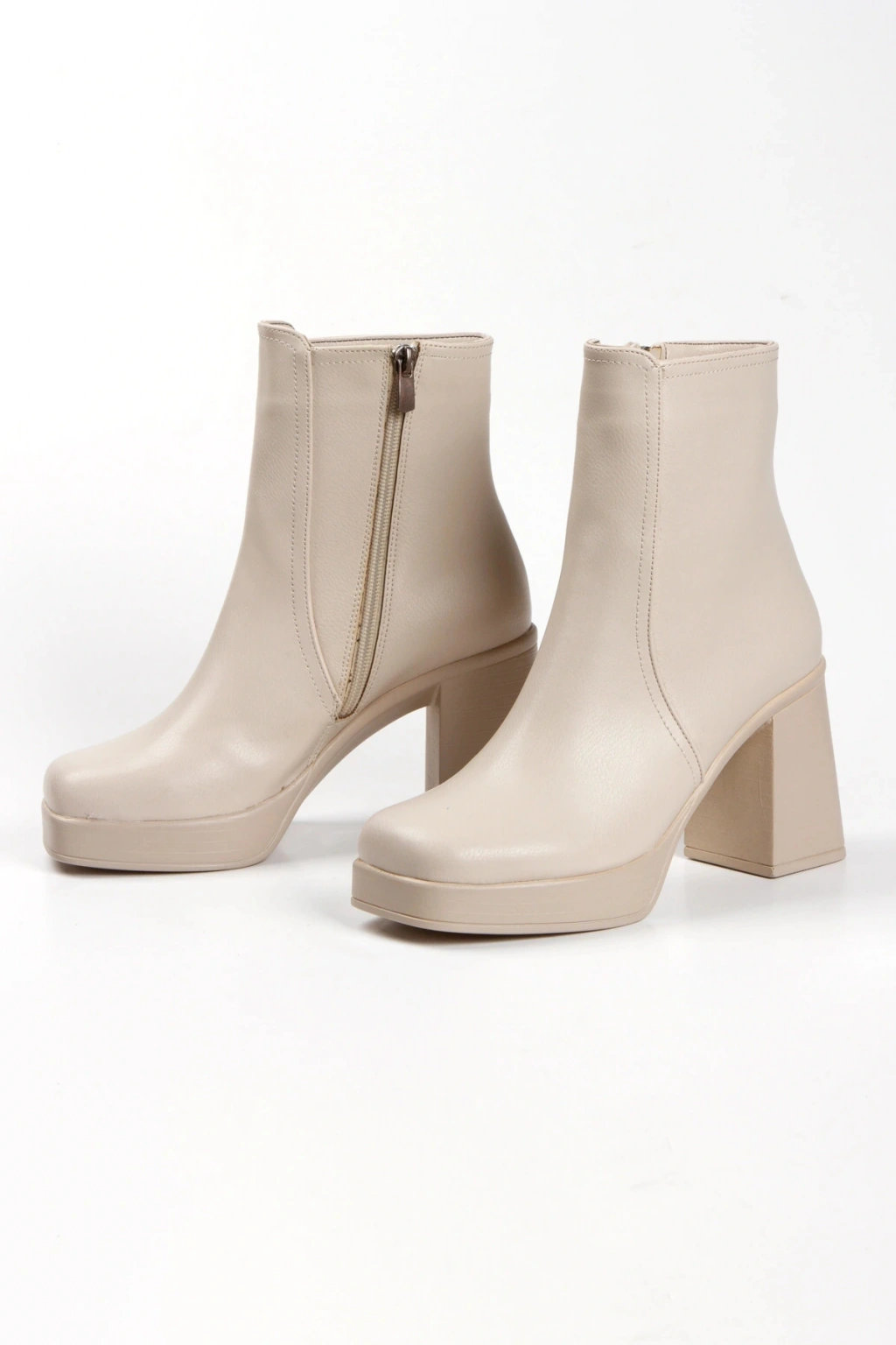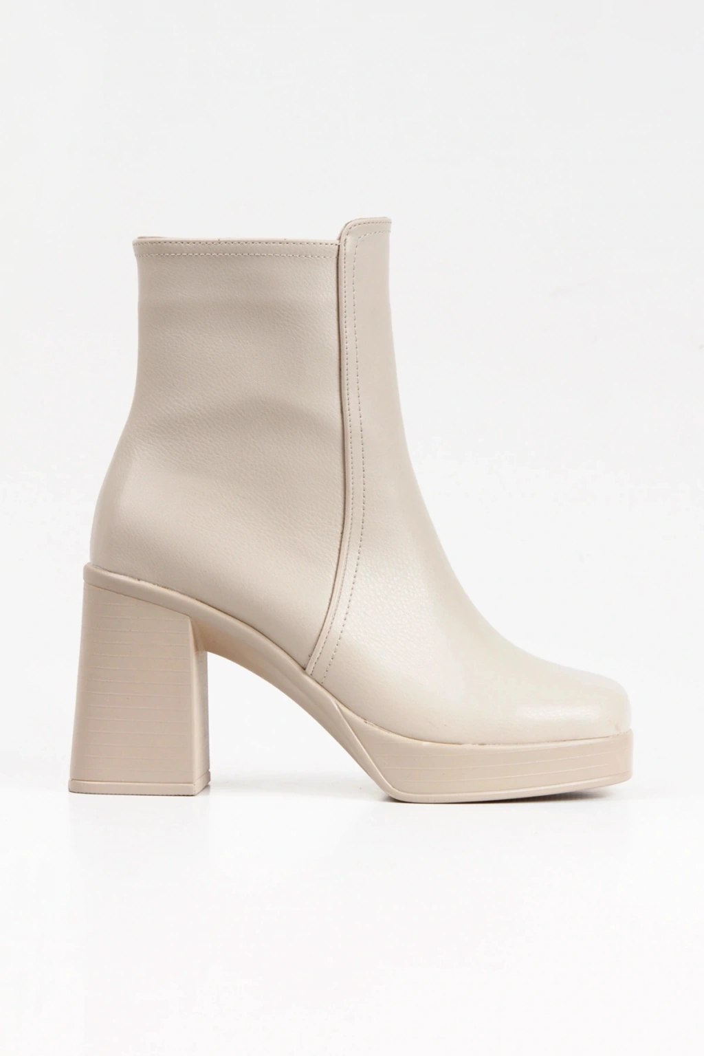Kadın Bej Yeni Tarz Küt Burunlu Hafif ve Yüksek Topuklu Dekolte Sade Rahat Şık Bot