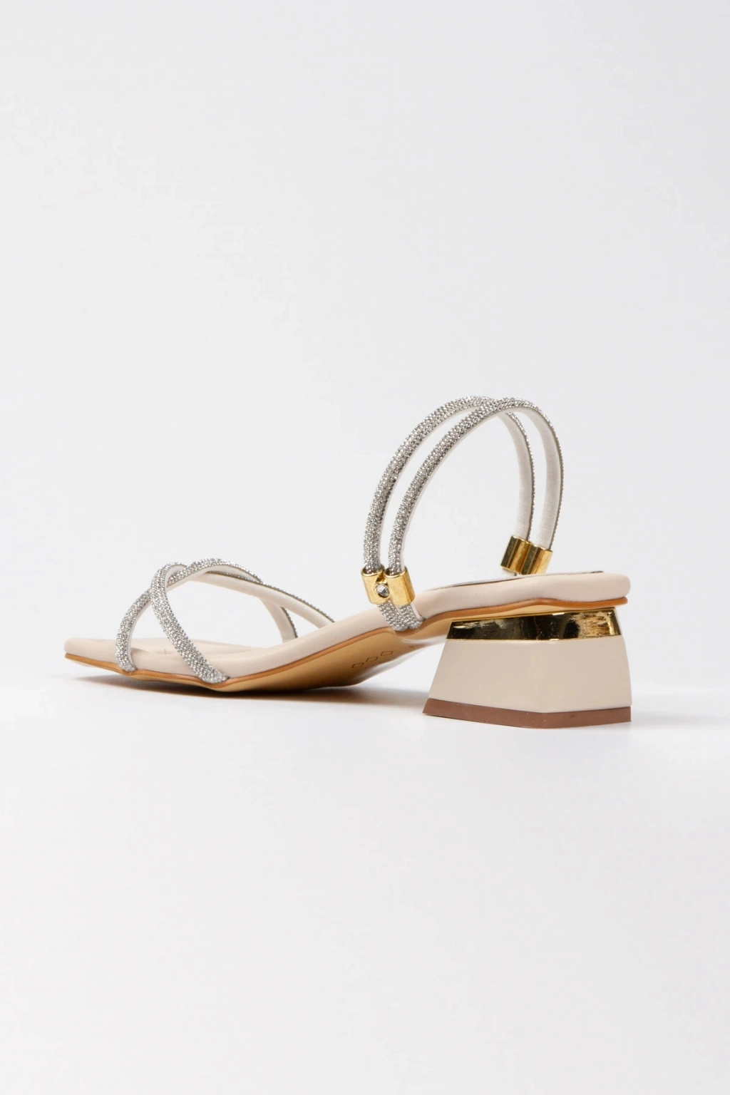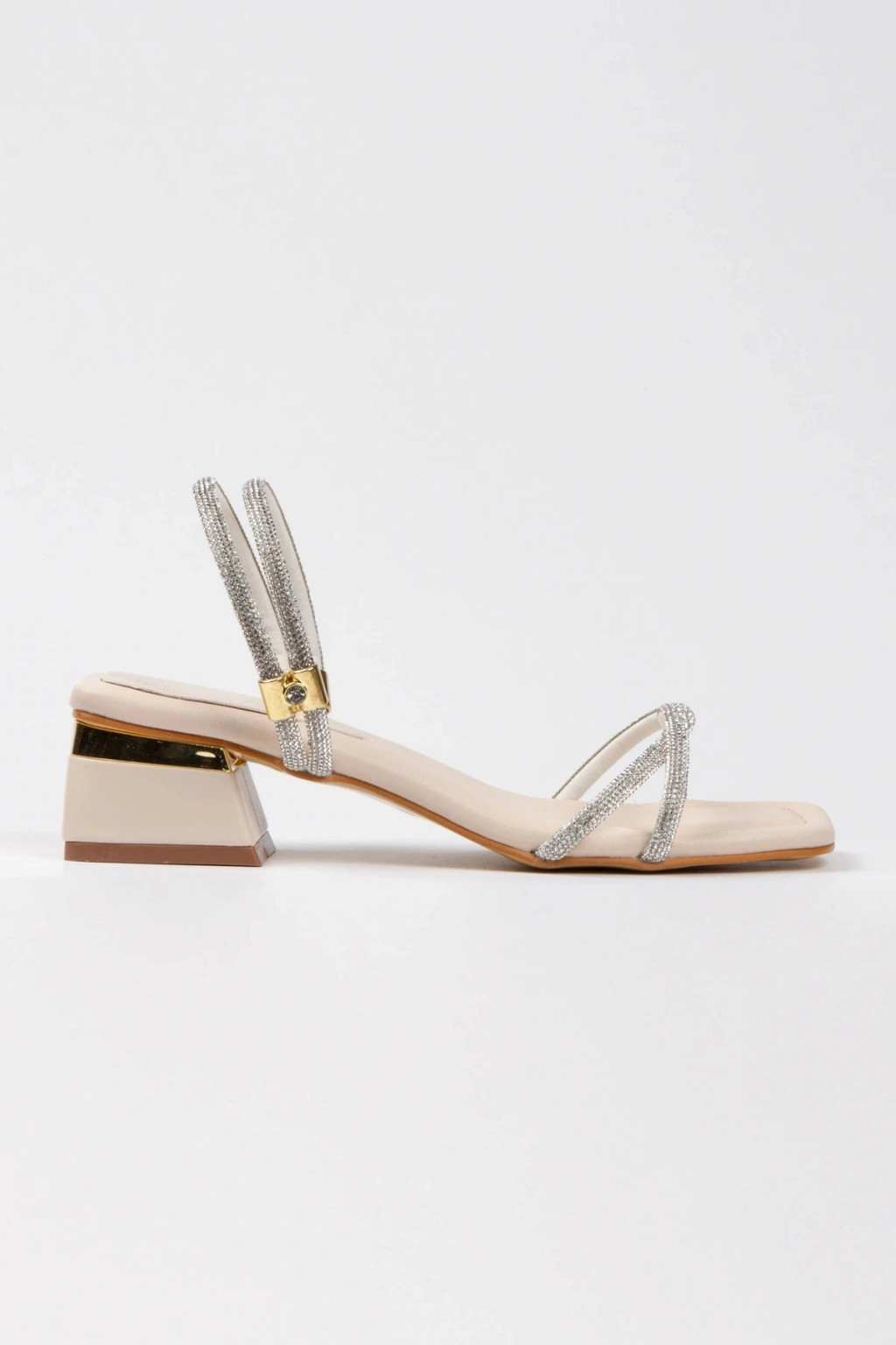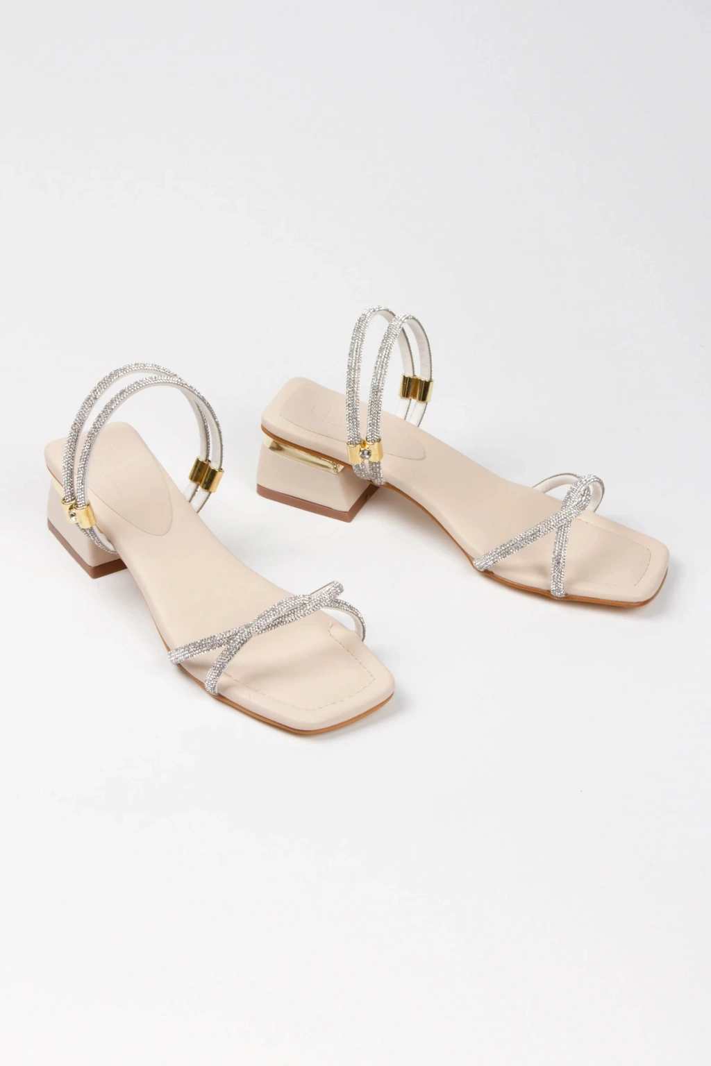 Kadın Bej Yumuşak Tabanlı Kalın Topuklu Parlak Damla Taşlı Klipsi Rahat Ve Şık Ayakkabı