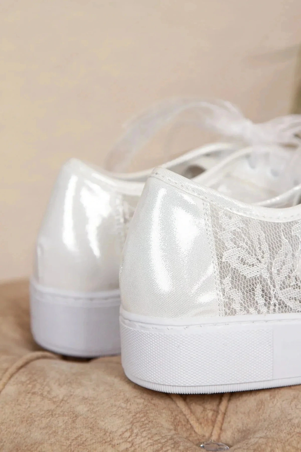 Kadın Beyaz Dantelli Bagcıklı Spor Abiye Gelinlik Ayakkabısı