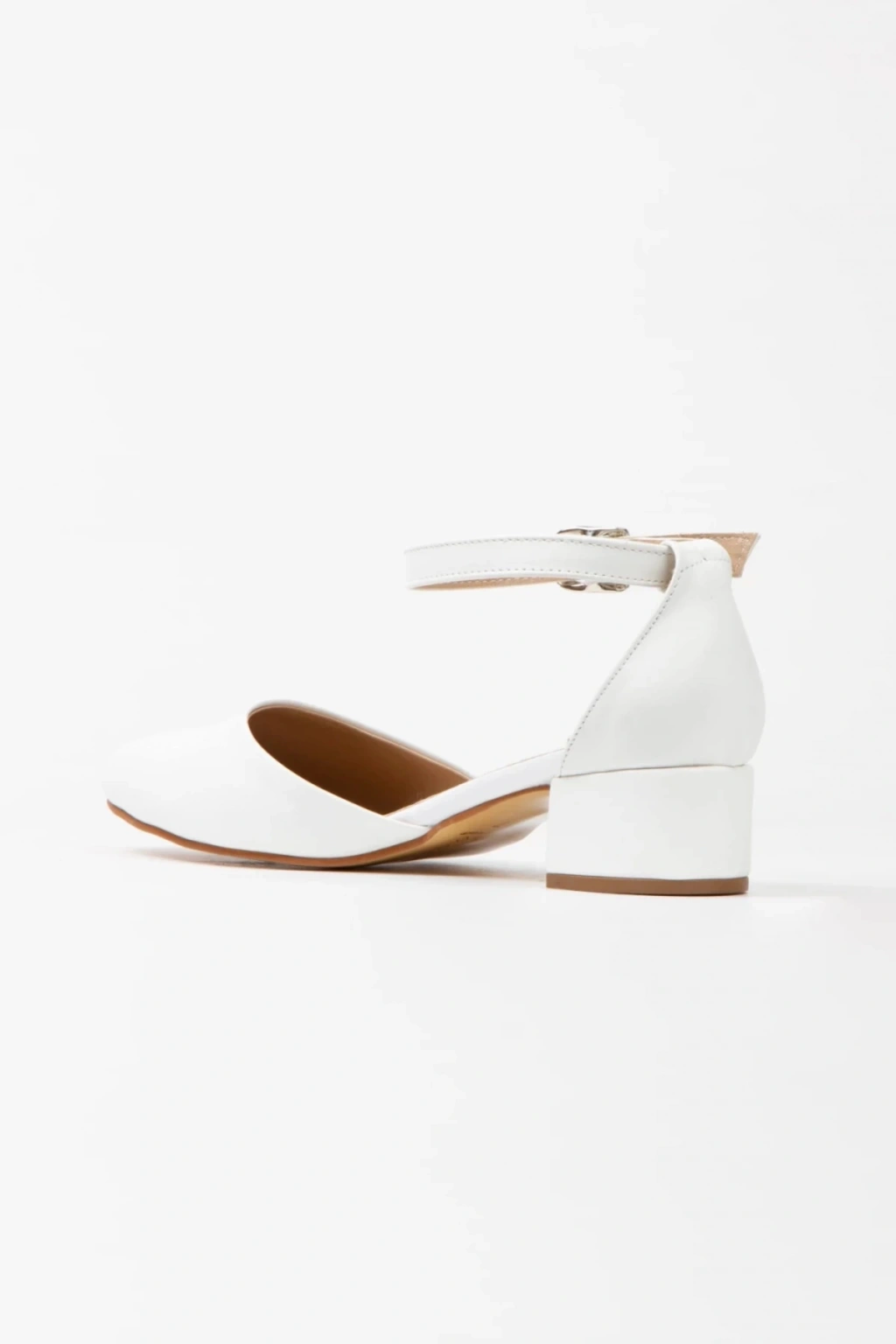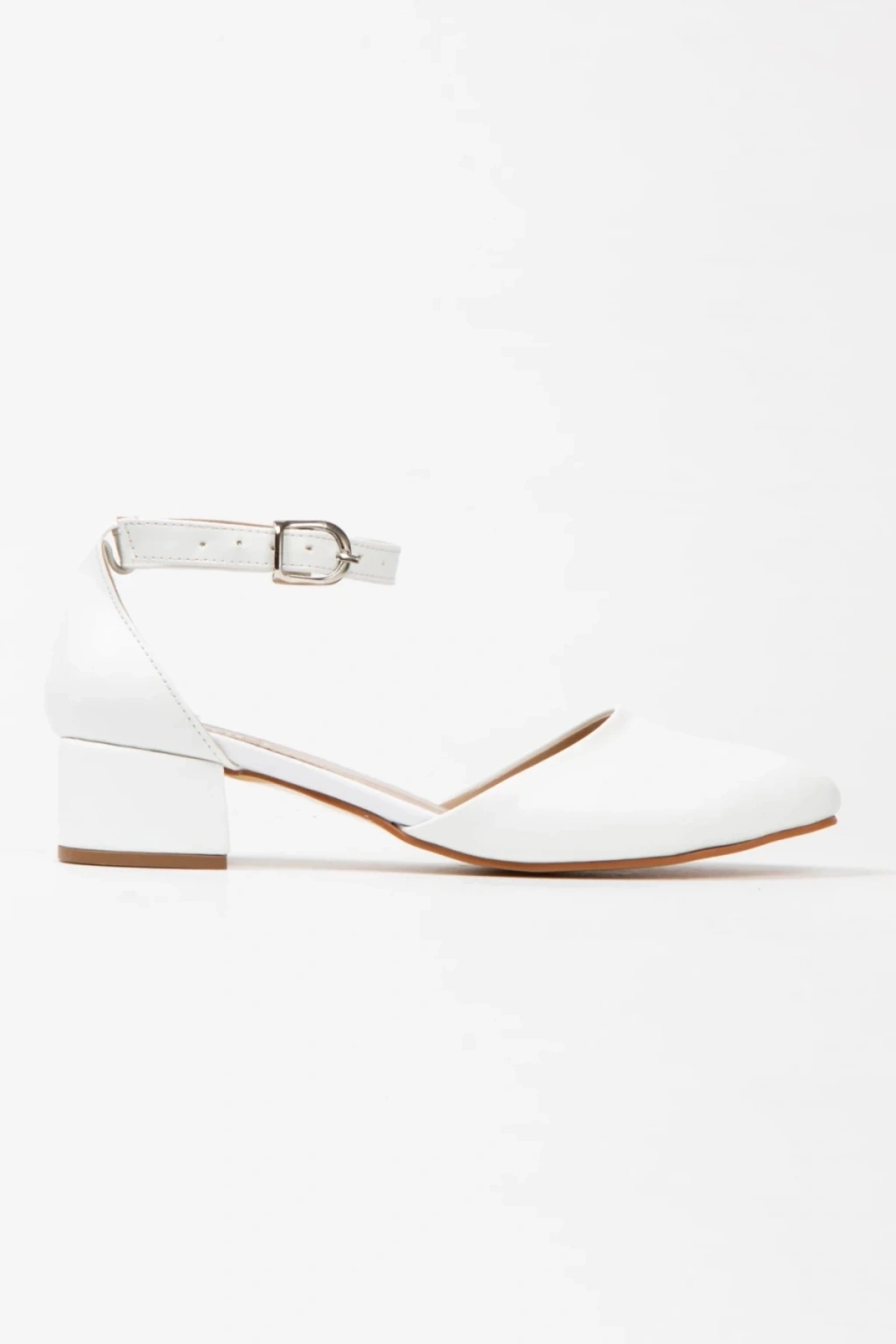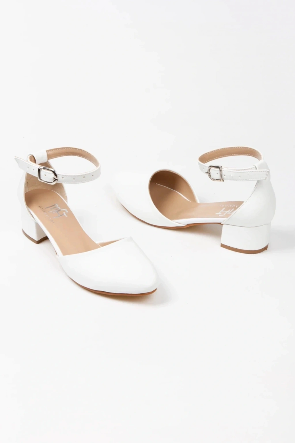 Kadın Beyaz Suni Deri Cilt Arkası Kapalı Kısa Kalın Topuklu Rahat Ve Şık Karnı Yarık Ayakkabı