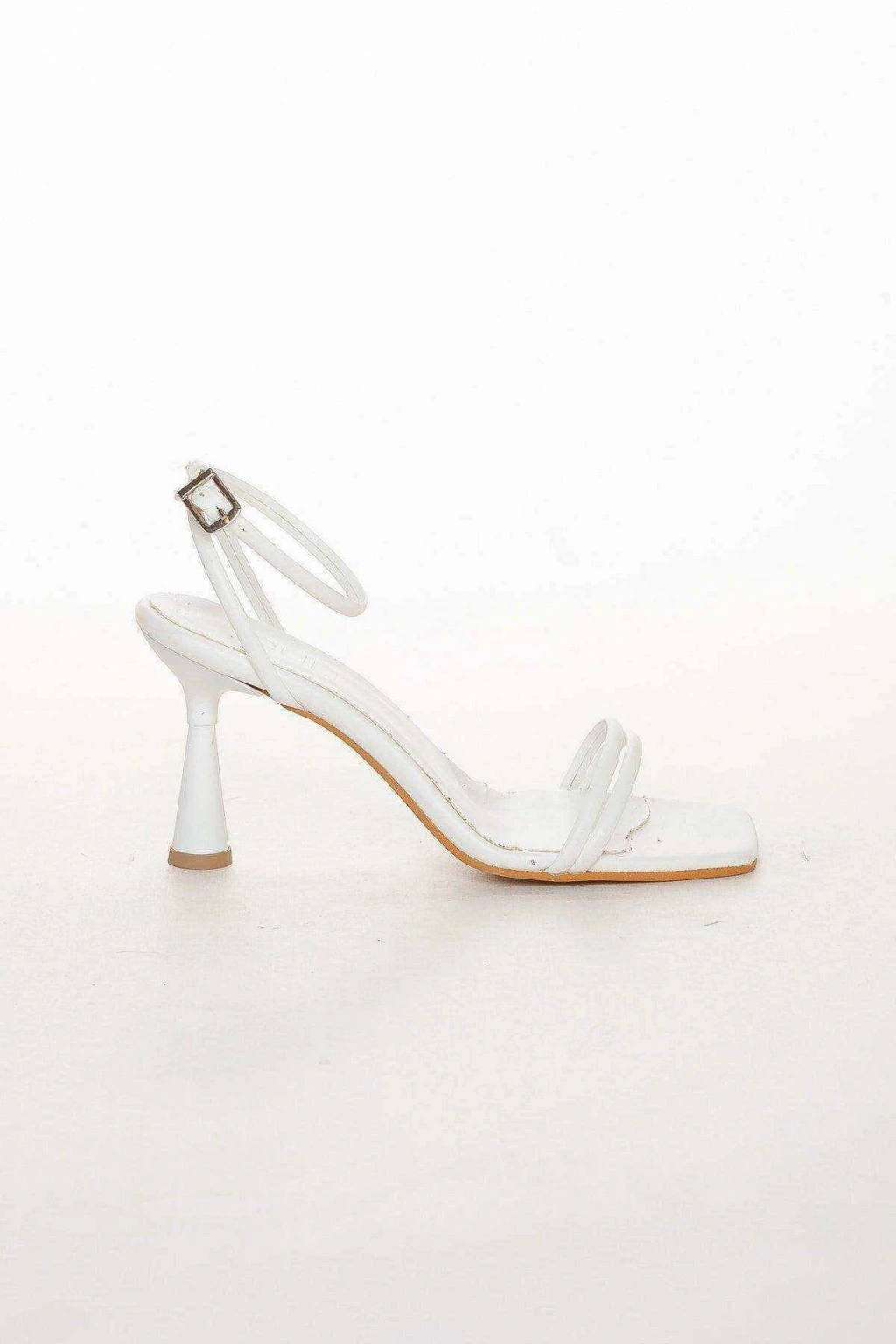 Kadın Beyaz Suni Deri Cilt Çift Bantlı Bilekten Bağlamalı Şık Tokalı Yazlık Ayakkabı