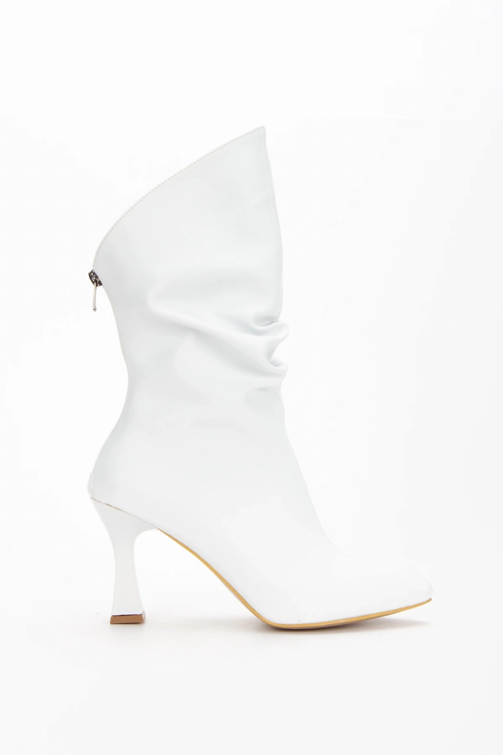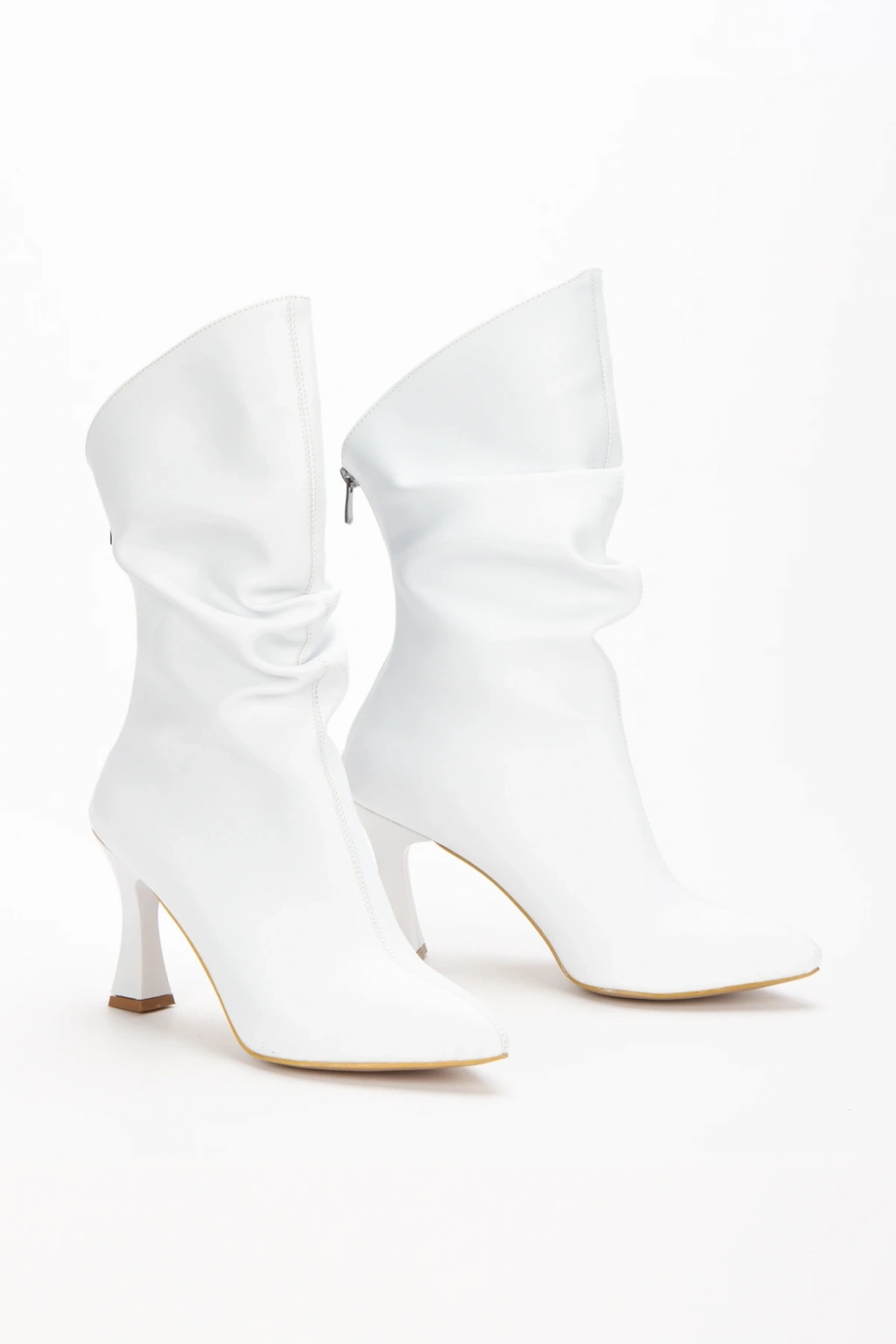 Kadın Beyaz Suni Deri Cilt Sivri Burunlu İnce Topuklu Rahat Şık Bot