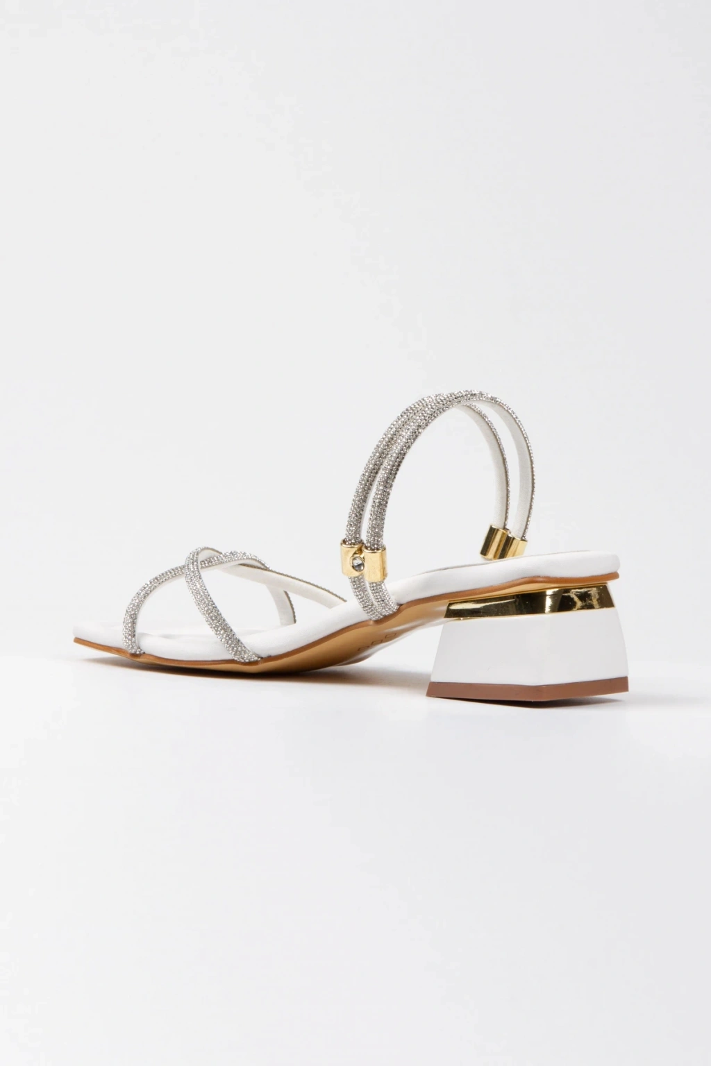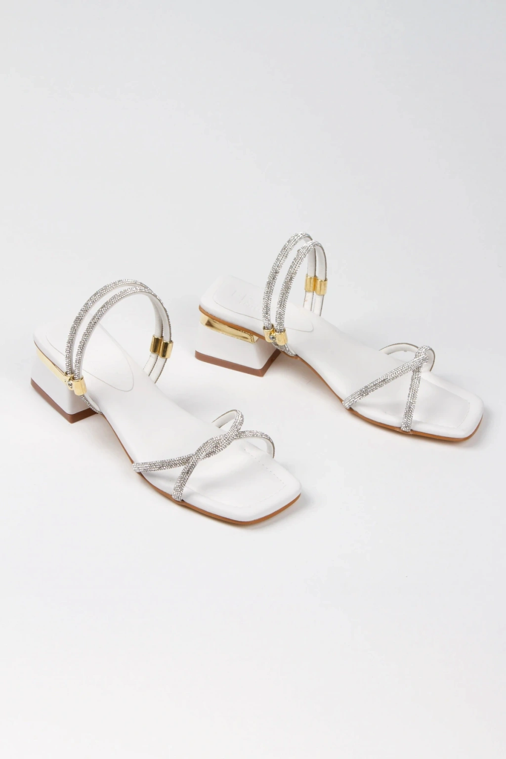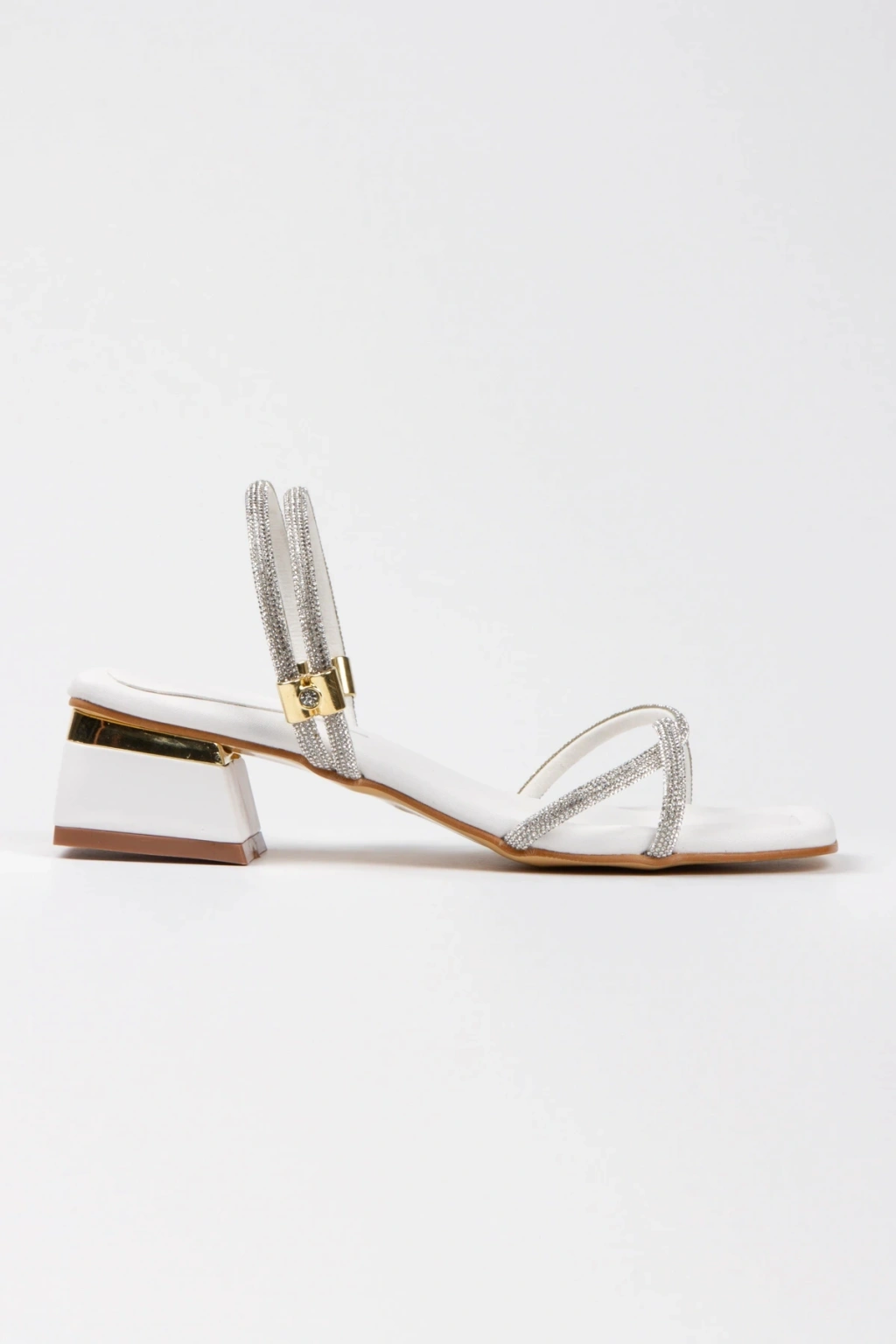 Kadın Beyaz Yumuşak Tabanlı Kalın Topuklu Parlak Damla Taşlı Klipsi Rahat Ve Şık Ayakkabı