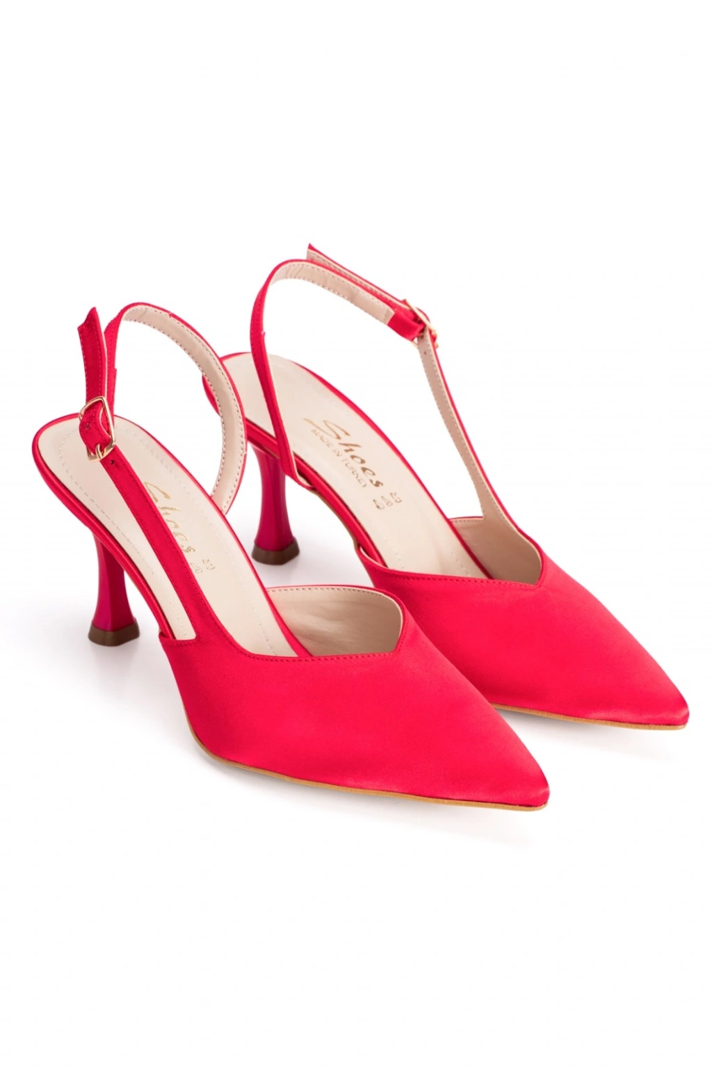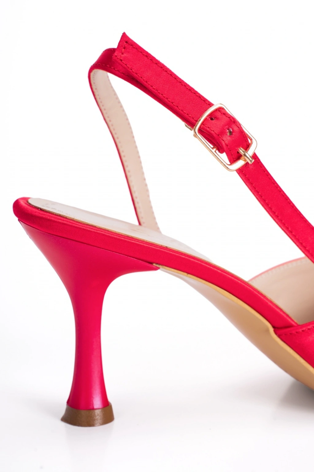 Kadın Kırmızı Saten İnce Topuklu Sivri Burunlu Arkası Açık Şık Abiye Stiletto