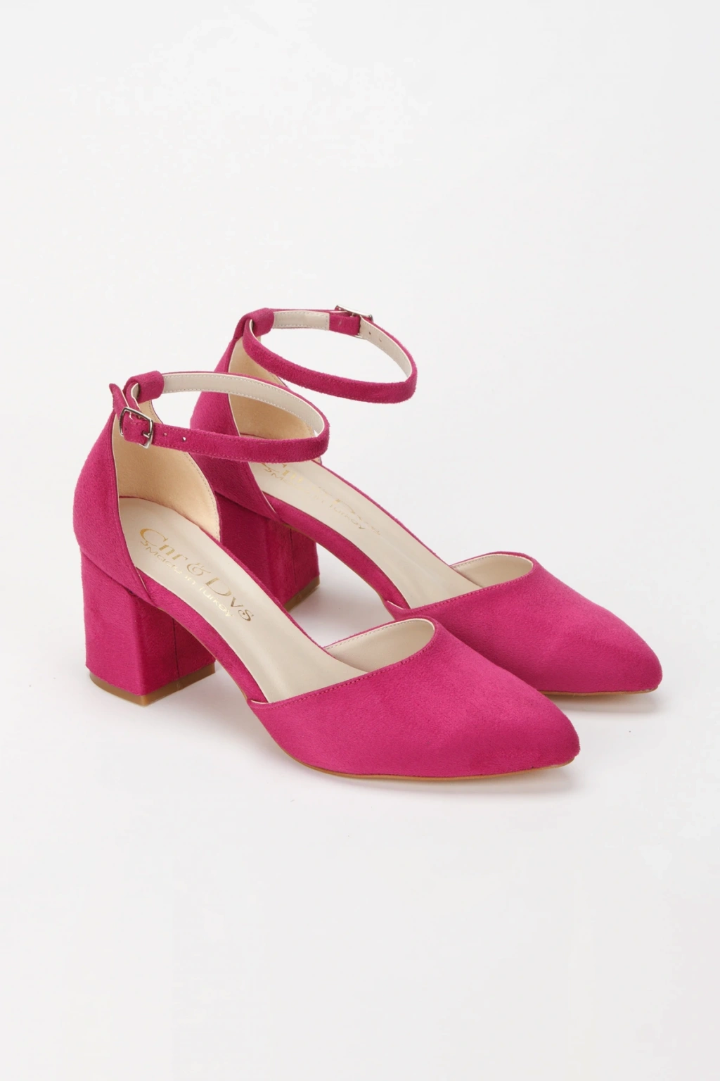 Kadın Fuşya Süet Arkası Kapalı Kalın Topuklu Karnıyarık Ayakkabı