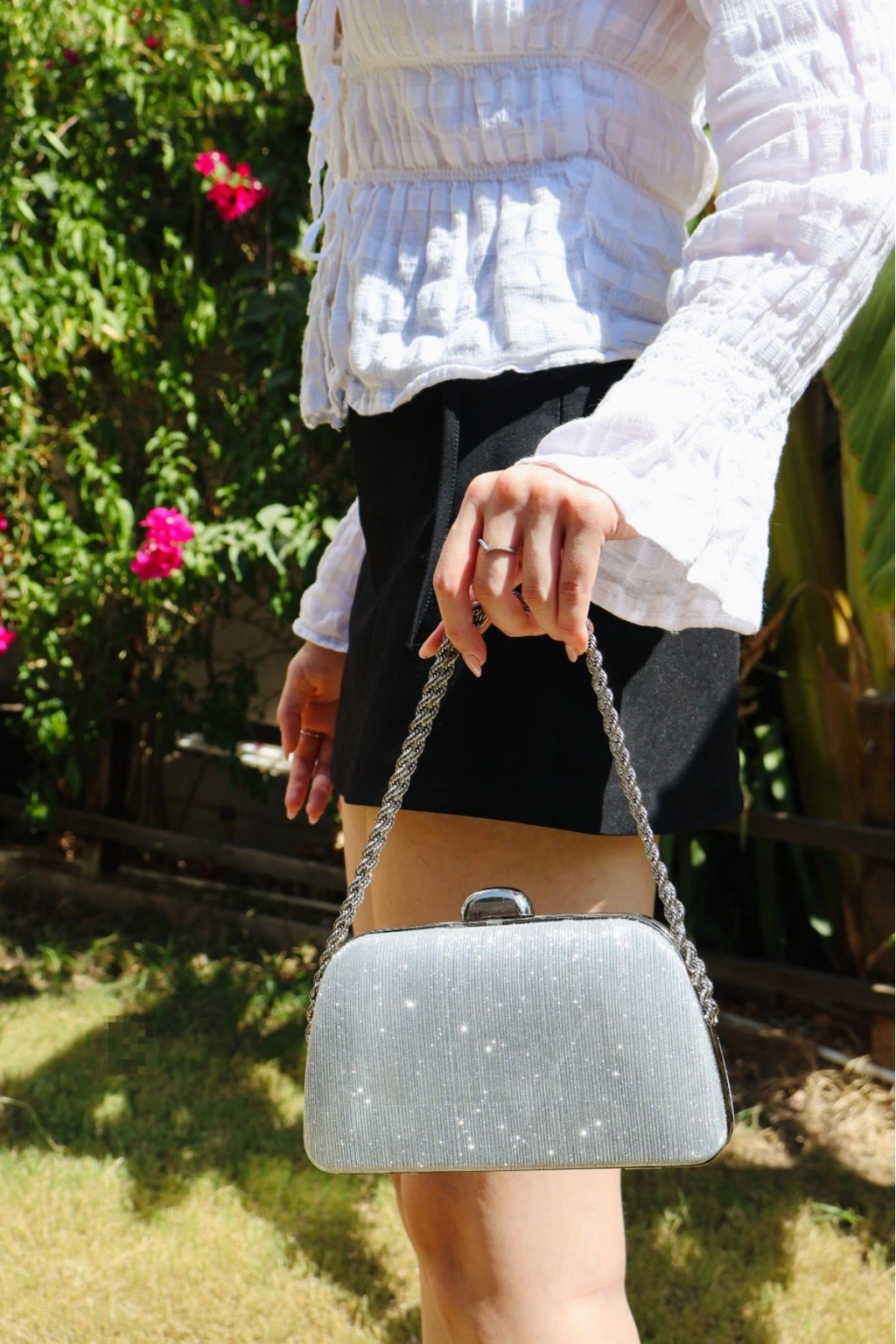 Kadın Gümüş 5 cm İnce Galvaniz Topuklu Rahat Stiletto ve Çanta Kombini