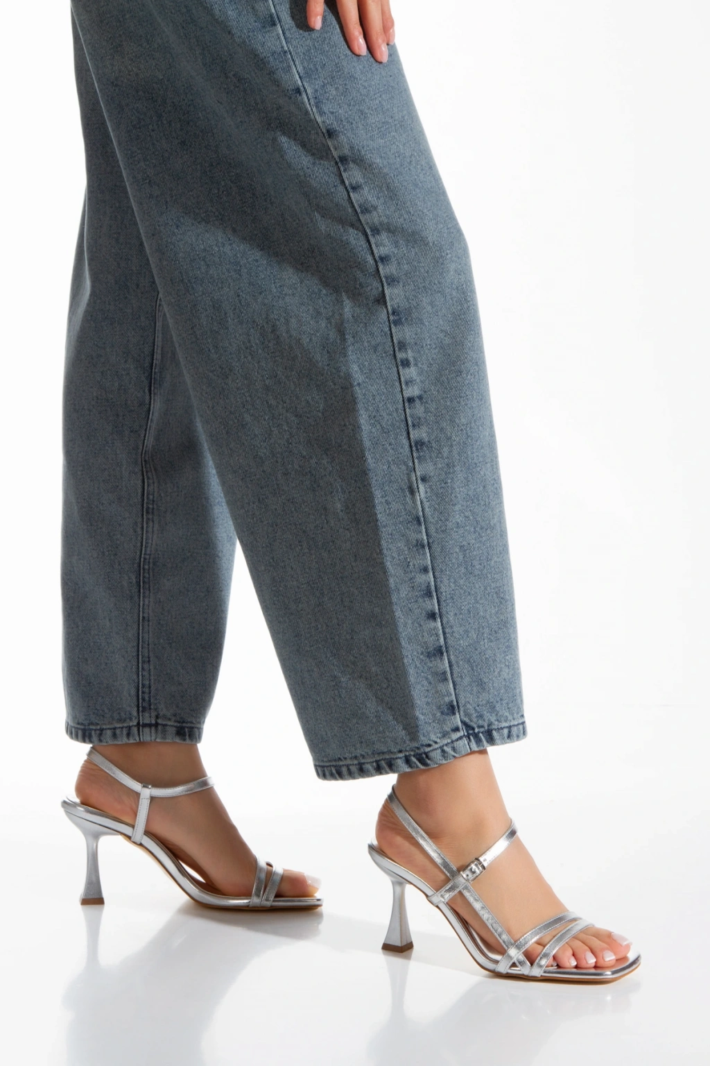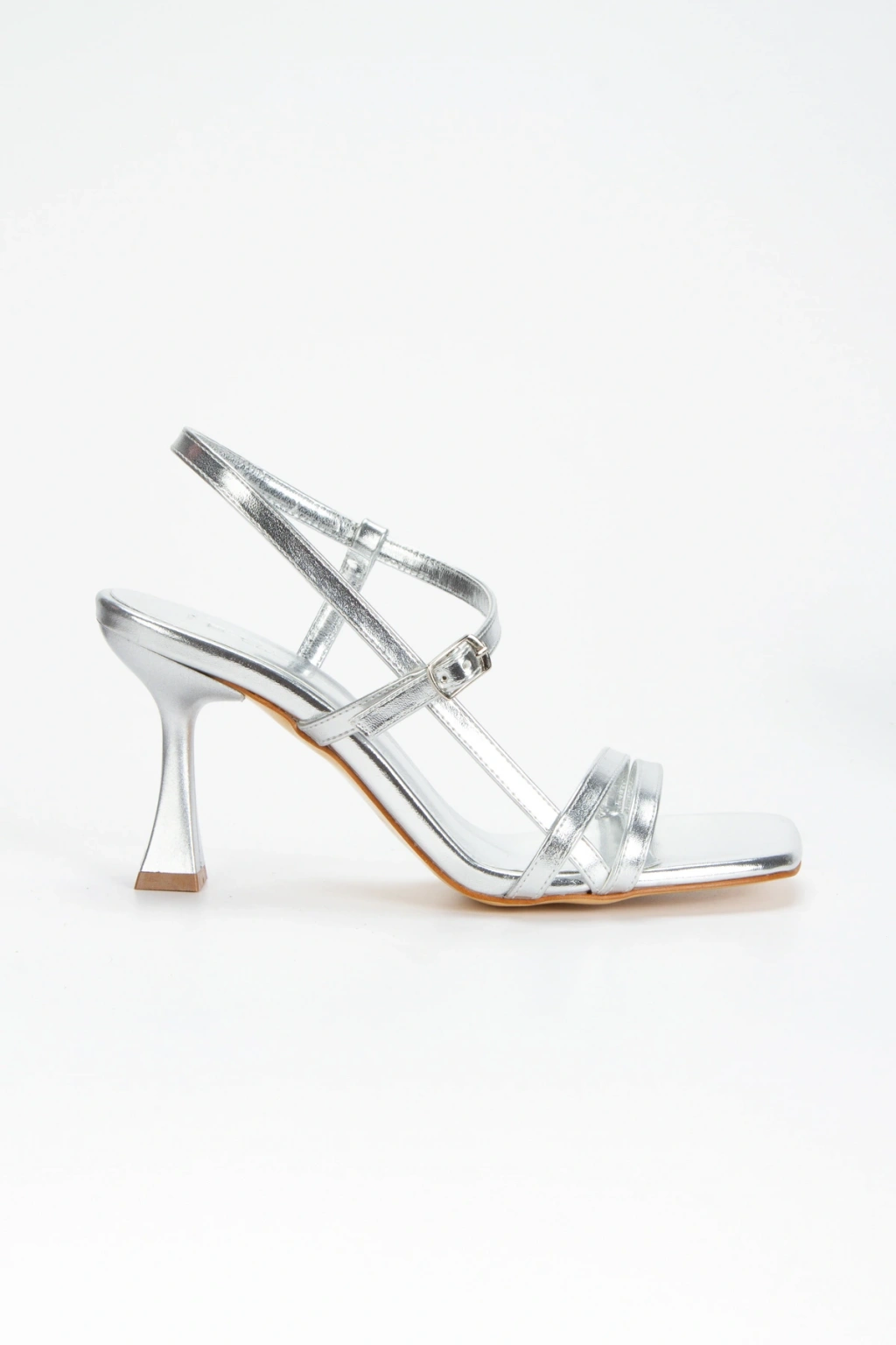 Kadın Gümüş Metalik Bilekten Ayarlamalı Şık Biye Detaylı Abiye Ayakkabı