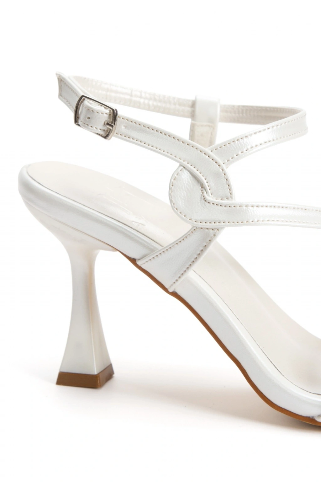 Kadın Sedef Suni Deri Cilt Tek Bantlı Biye Yılan Detaylı Abiye Ayakkabı