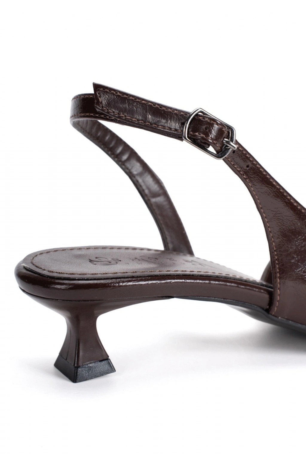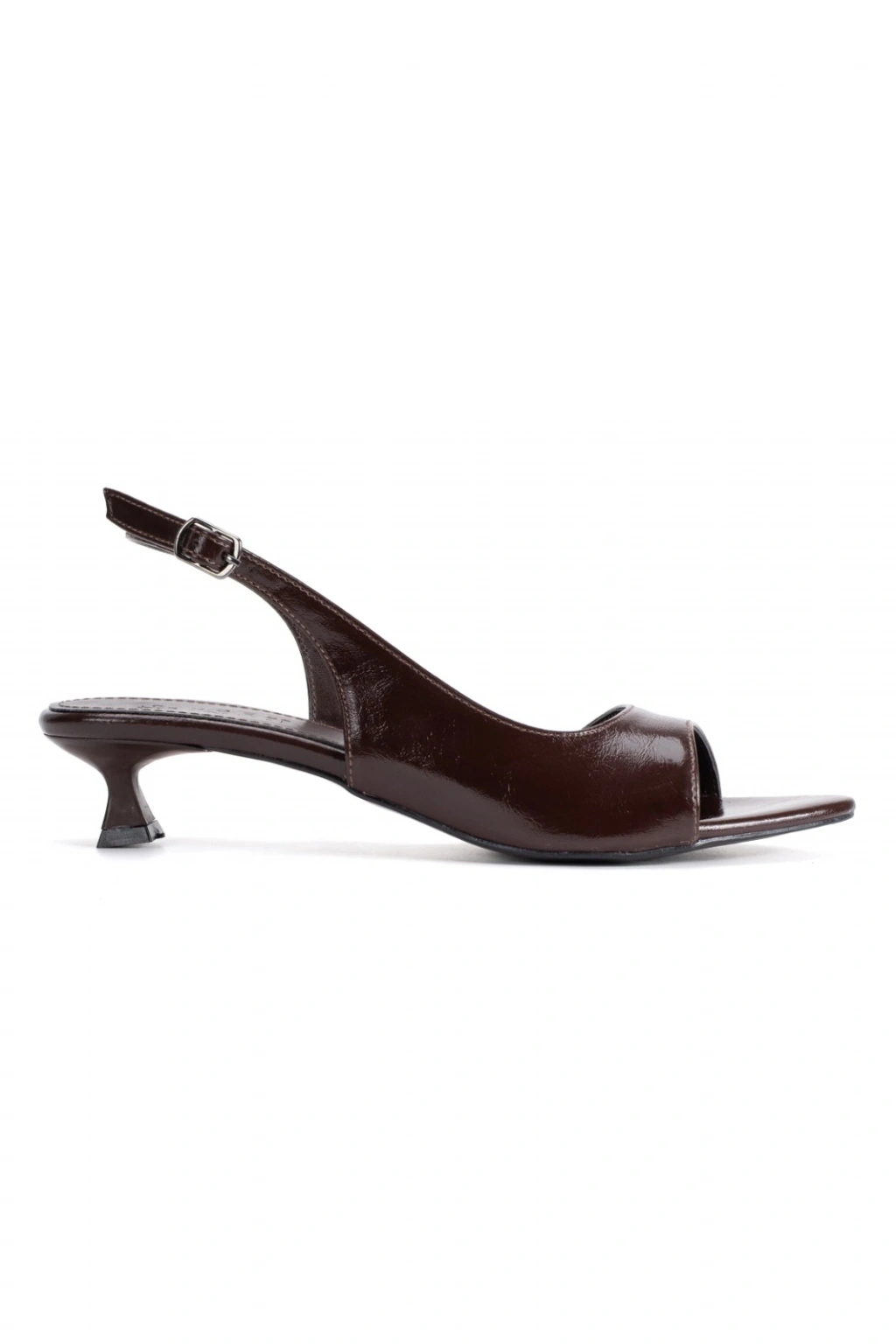​​​​​​​Kadın Kahverengi Rugan 3,5 cm Kısa Alçak Topuklu Yazlık Ayakkabı