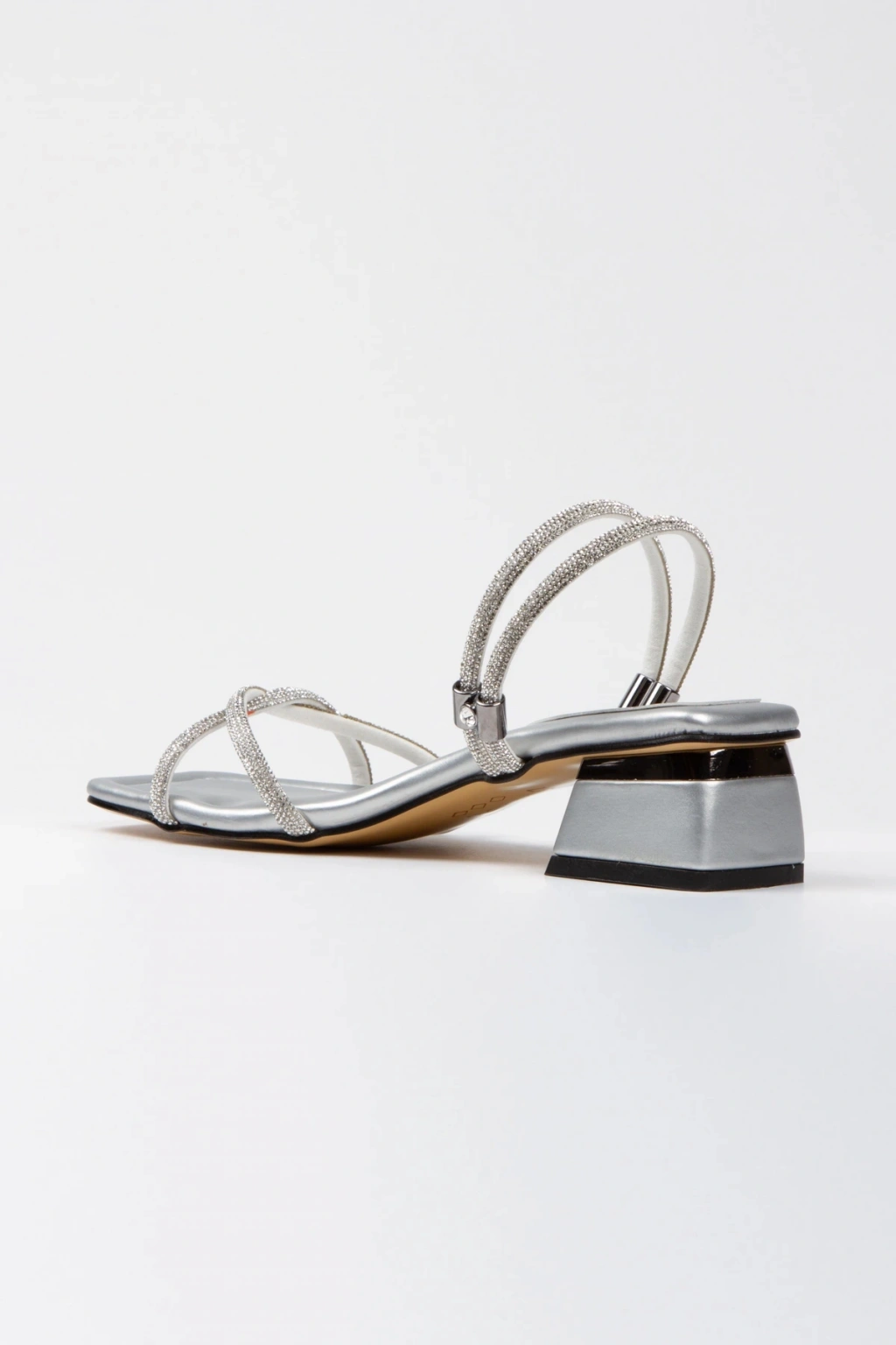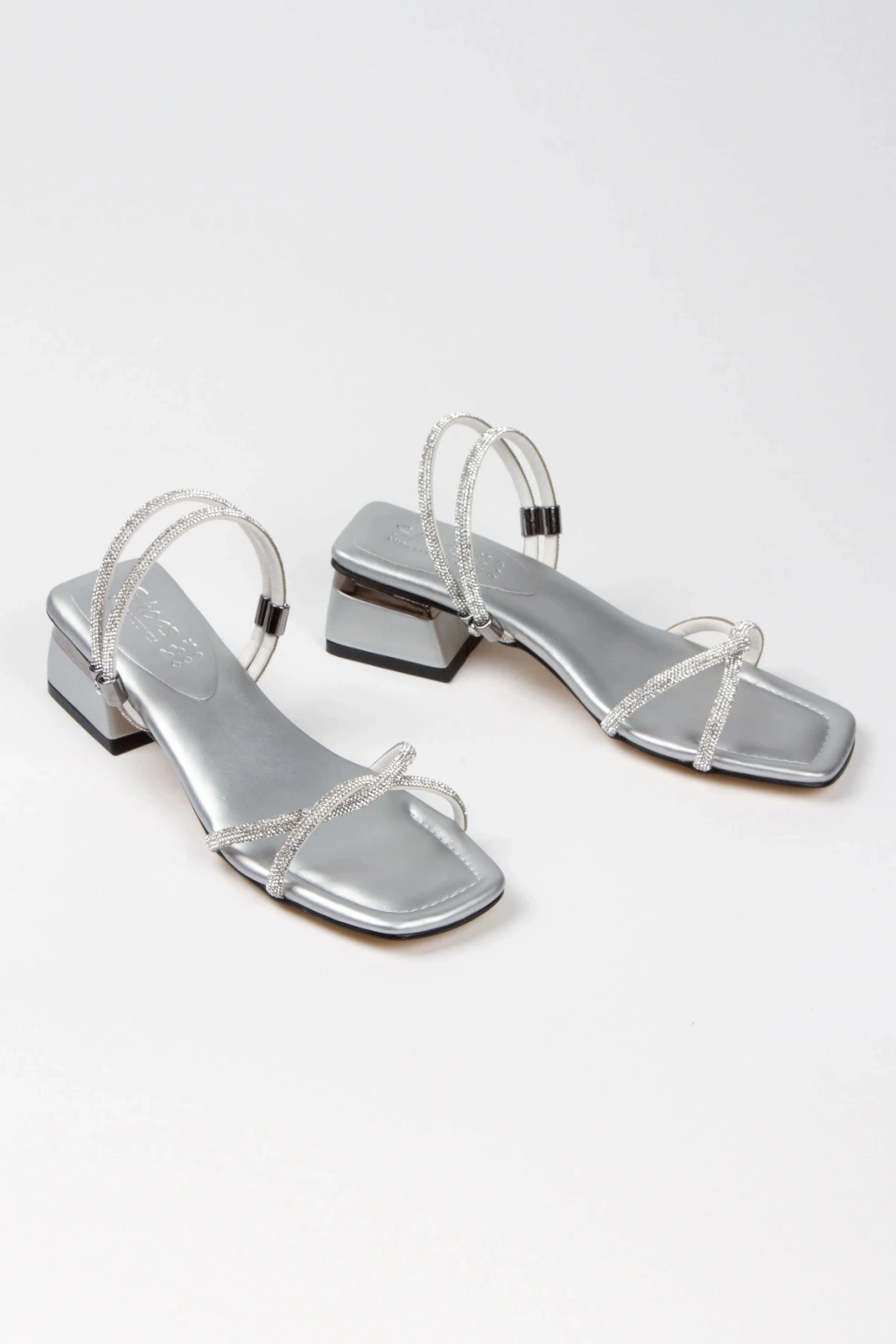 Kadın Gümüş Yumuşak Tabanlı Kalın Topuklu Parlak Damla Taşlı Klipsi Rahat Ve Şık Ayakkabı