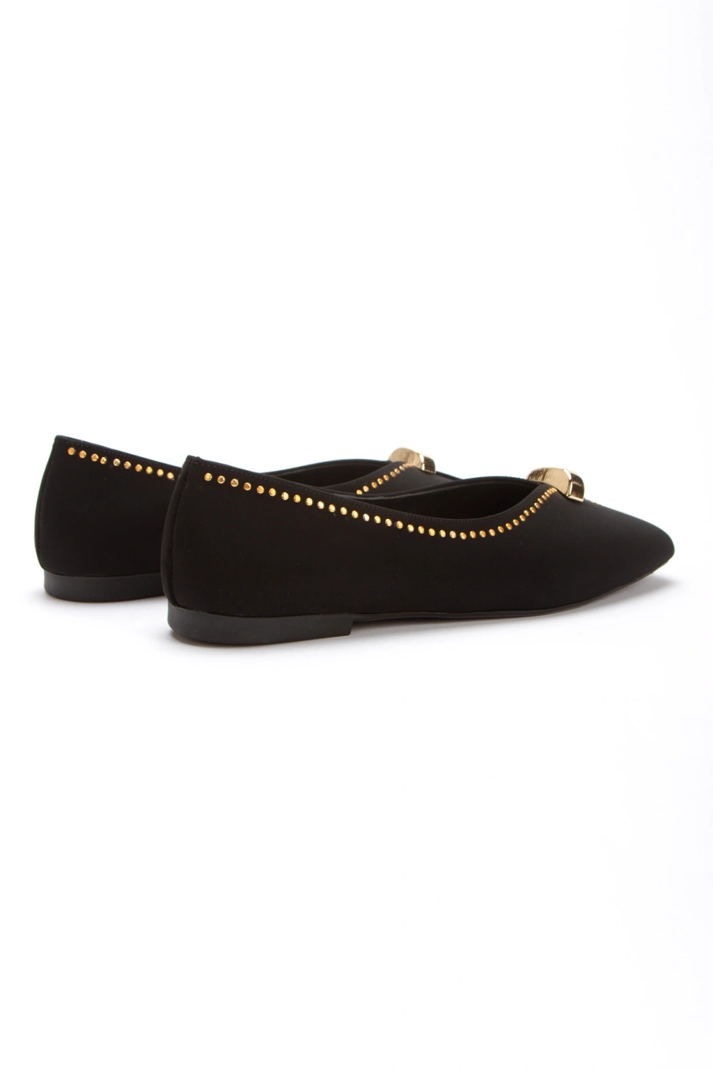 Kadın Siyah Süet Şık Dikiş Desenli Düz Topuklu Toka Detaylı Rahat Babet Ayakkabı