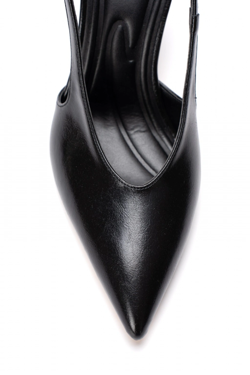 Kadın Siyah Suni Deri İnce Topuklu Sivri Burunlu Arkası Açık Şık Abiye Stiletto