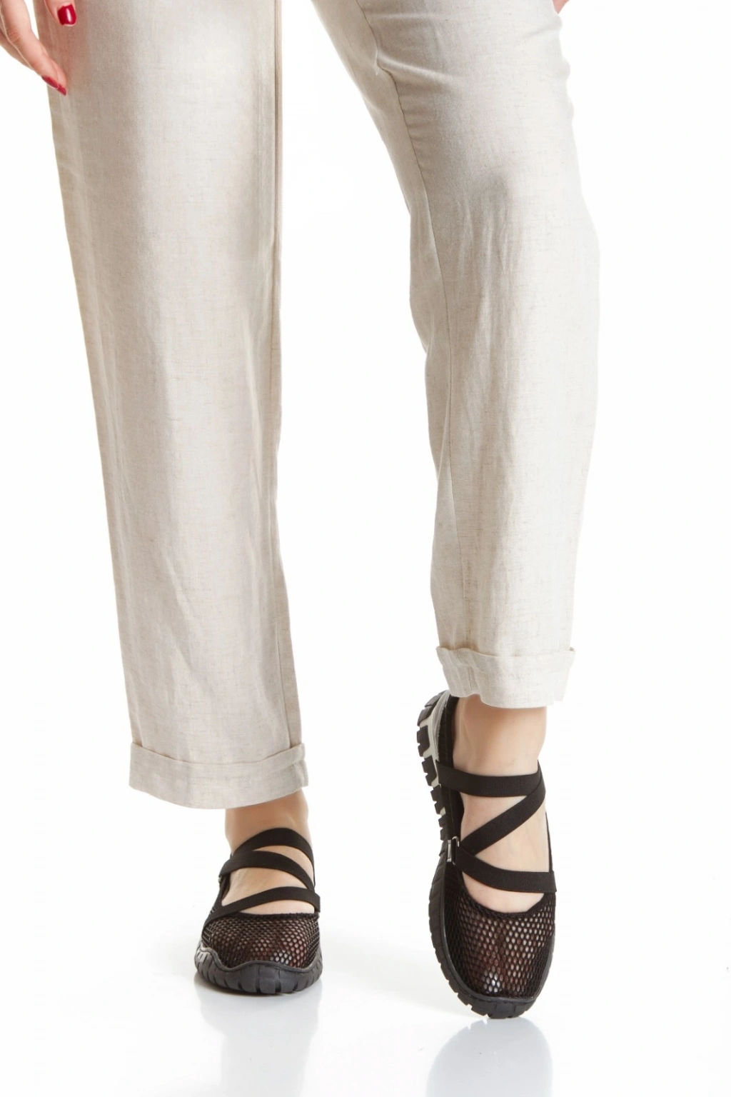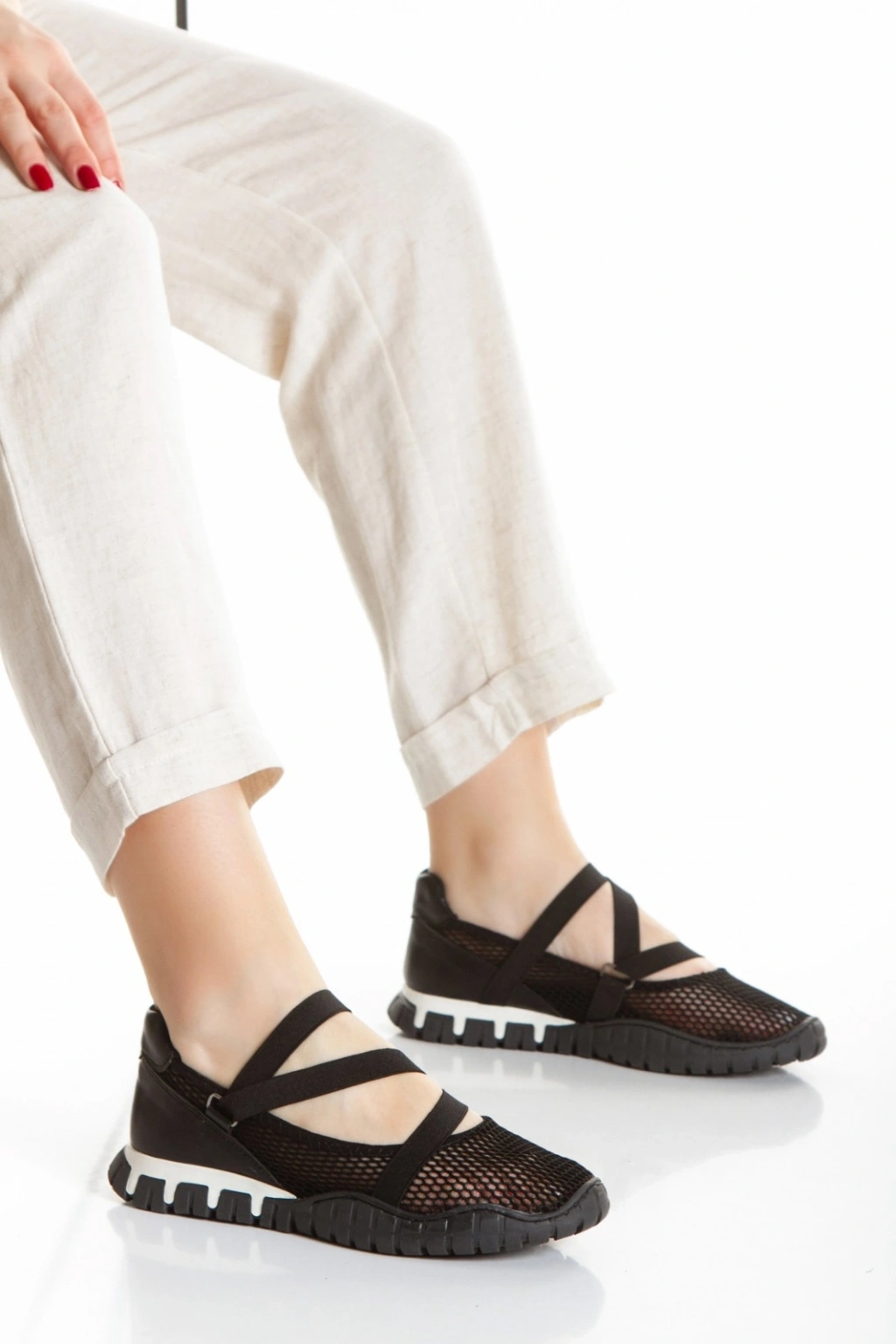 Kadın Siyah Cırt Cırtlı Kalın Tabanlı Ortopedik Fileli Günlük Rahat ve Şık Spor Ayakkabı