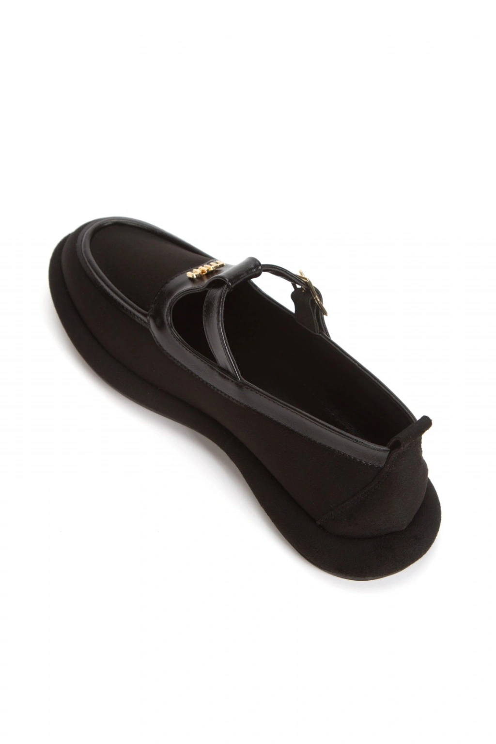 Kadın Siyah Düz Topuklu Şık Toka Detaylı Rahat Günlük Babet Ayakkabı