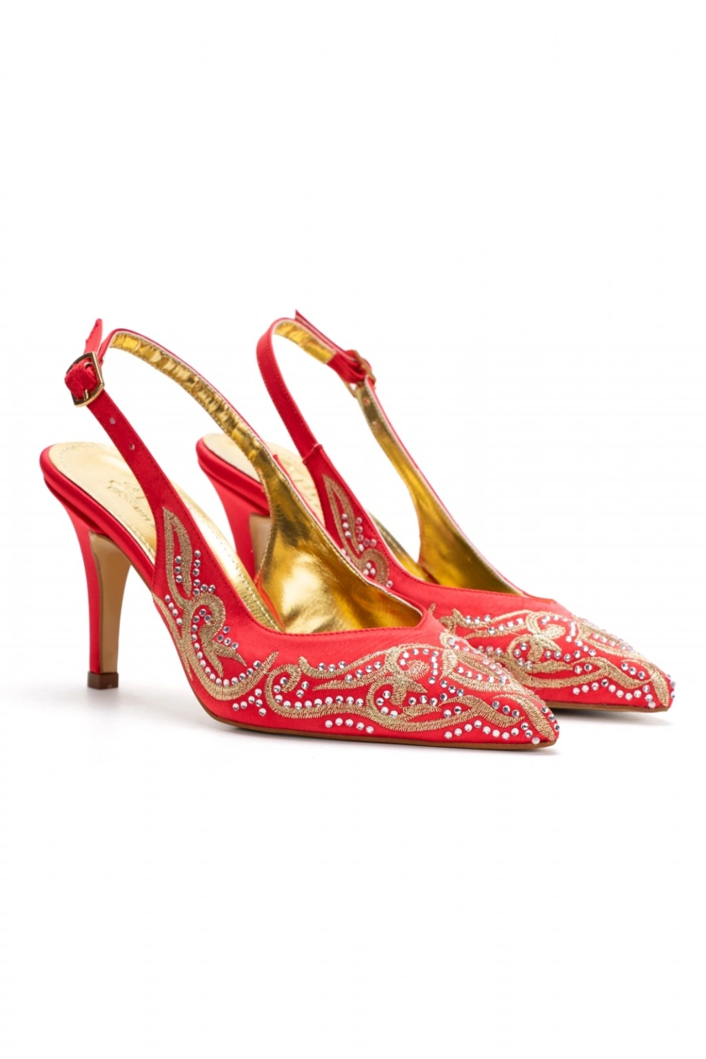 Kadın Kırmızı Piko İşlemeli İnce Topuklu Sivri Burunlu Arkası Açık Şık Abiye Stiletto