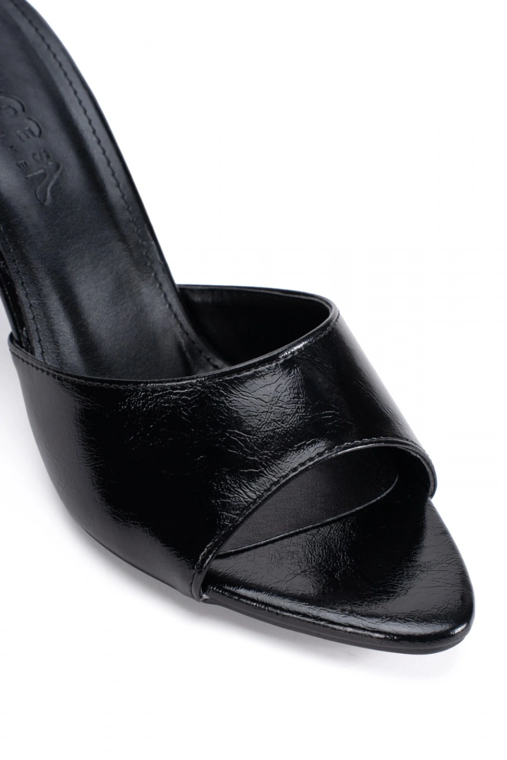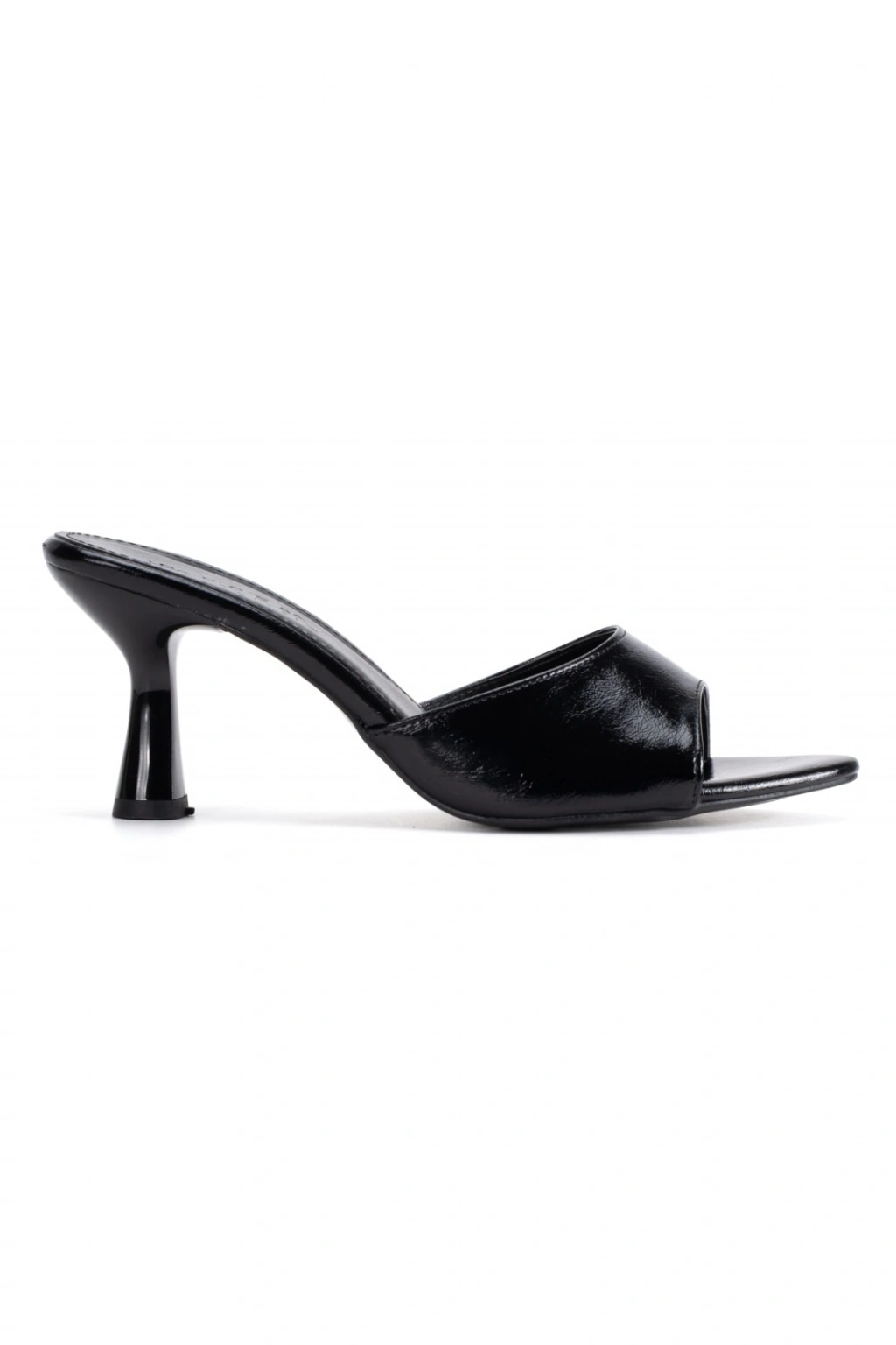 Kadın Siyah Rugan 7 cm İnce Topuklu Rahat ve Şık Terlik