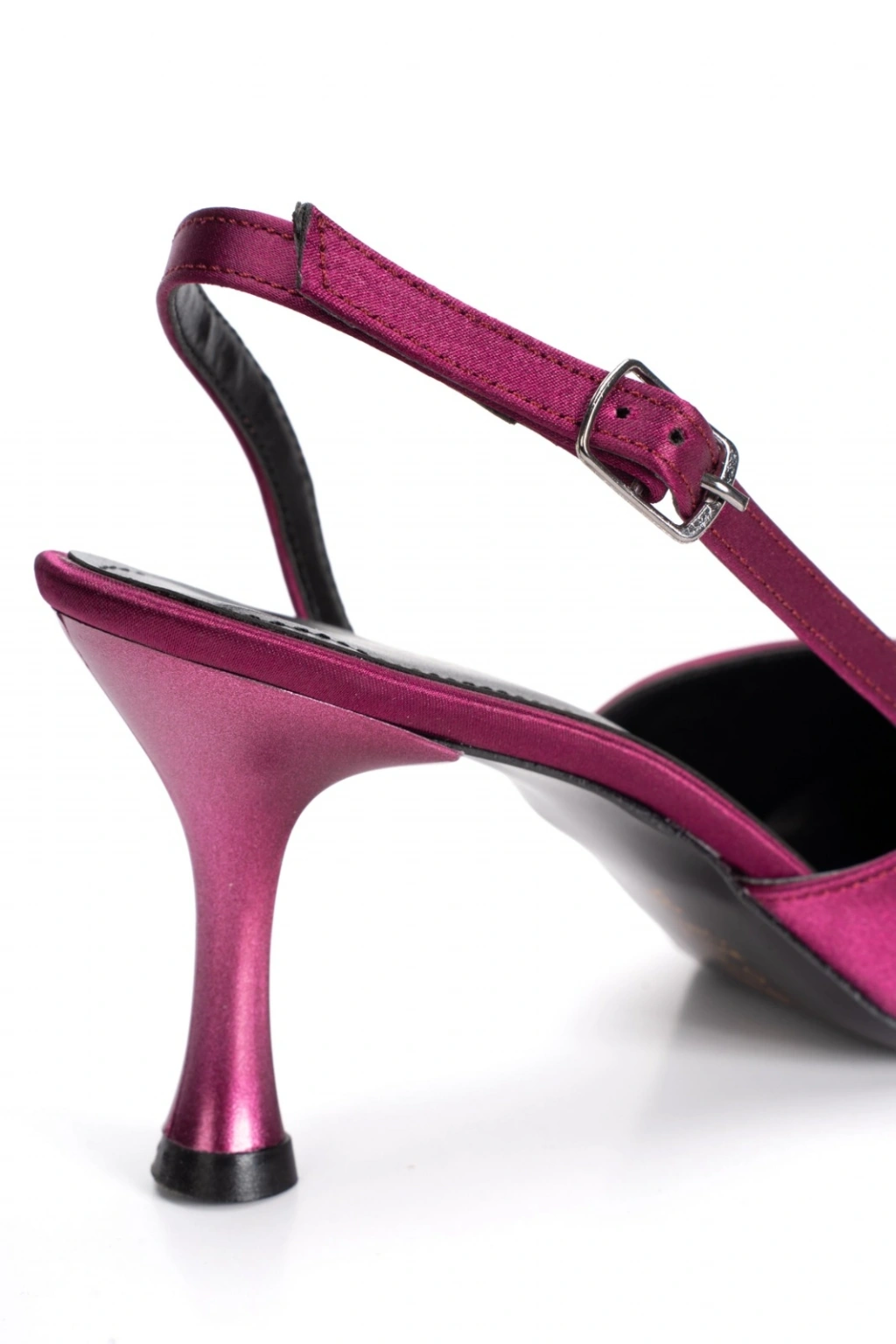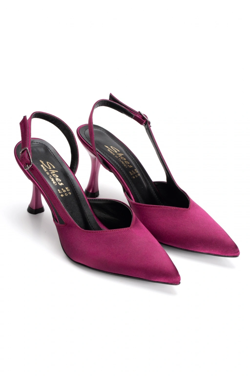 Kadın Fuşya Saten İnce Topuklu Sivri Burunlu Arkası Açık Şık Abiye Stiletto