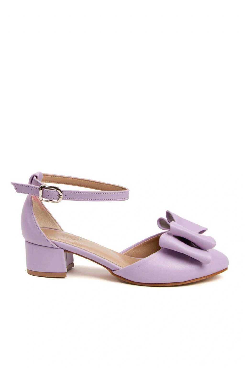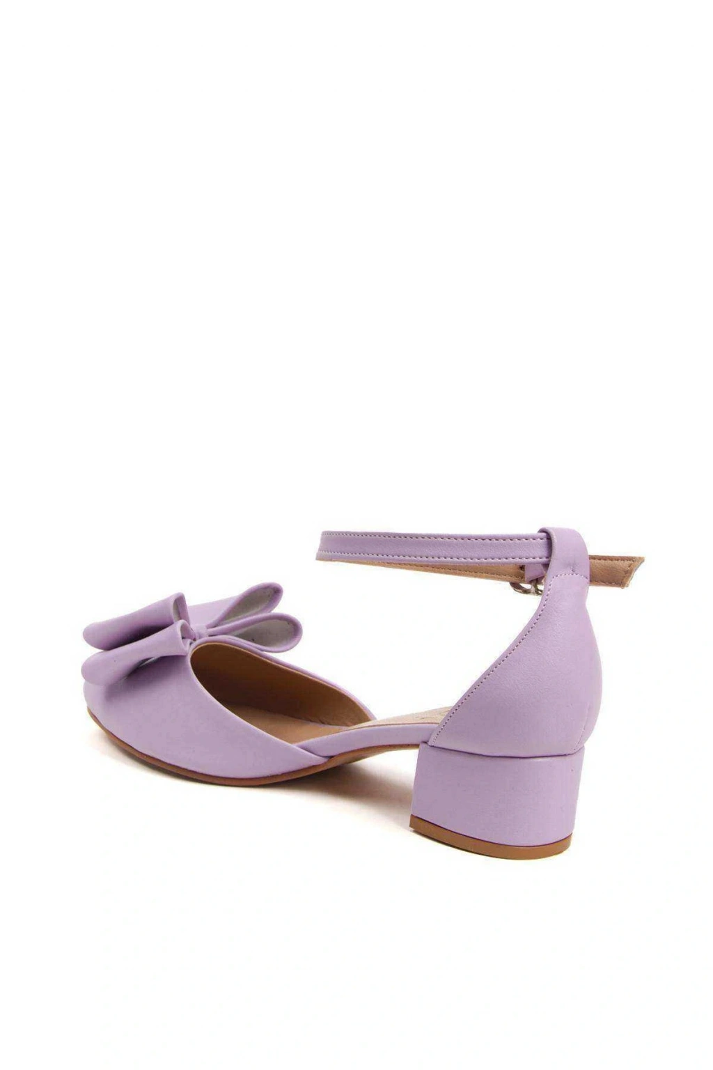 Kadın Lila (MOR) Suni Deri Cilt 3 Cm Kısa Kalın Topuklu Şık Fiyonk Detaylı Stiletto Rahat Ve Günlük