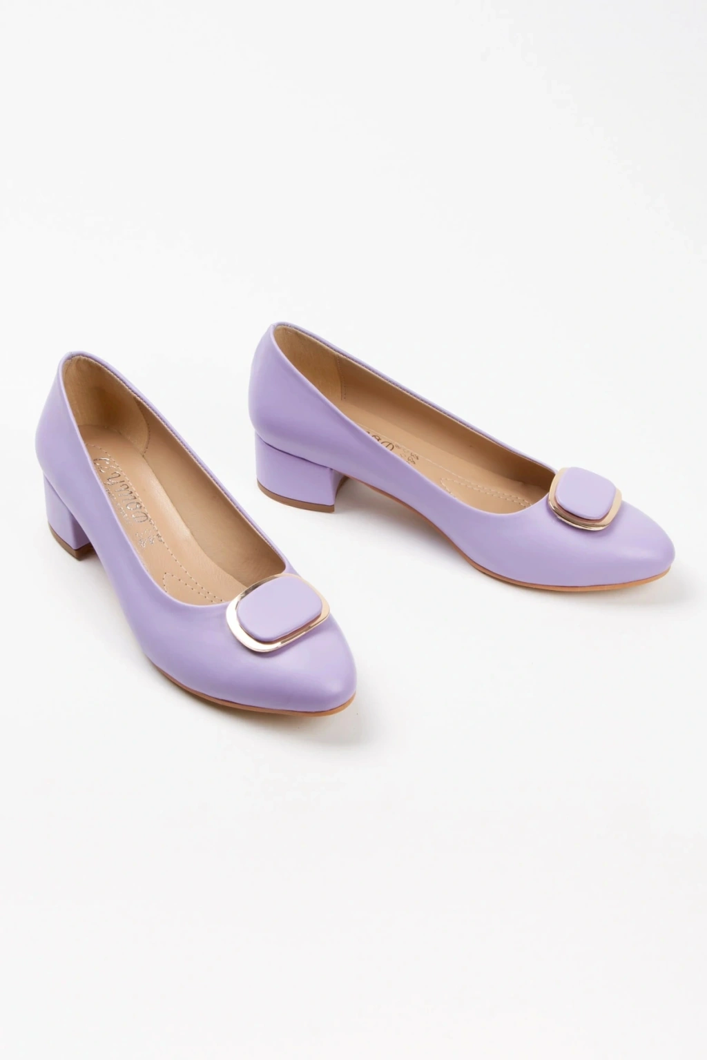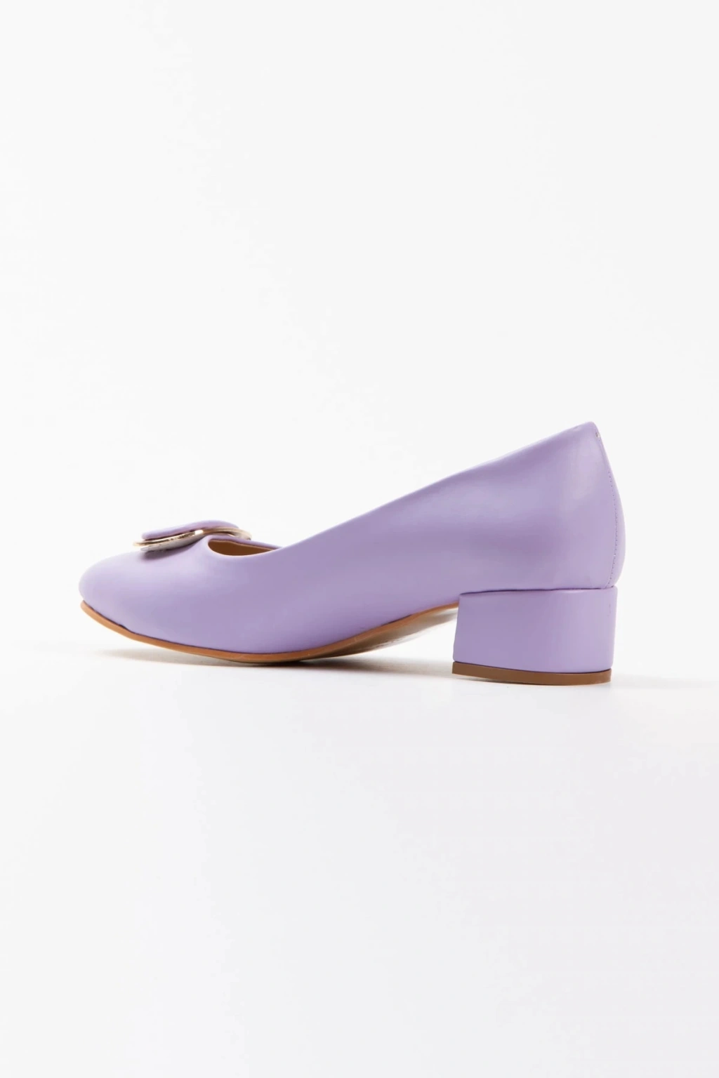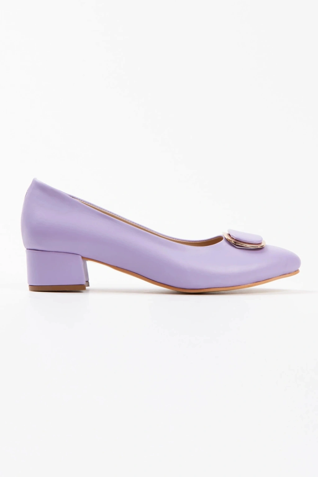 Kadın Lila ( Mor ) Suni Deri Cilt Stiletto 3 Cm Kısa Kalın Topuklu Şık Toka Detaylı Rahat Stiletto