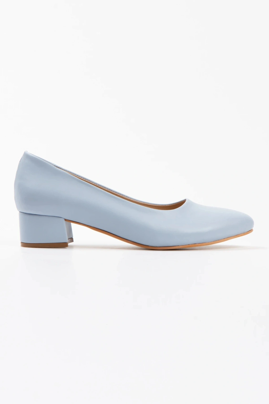 Kadın Mavi Suni Deri Cilt Stiletto Kısa Kalın Topuklu Şık Stiletto