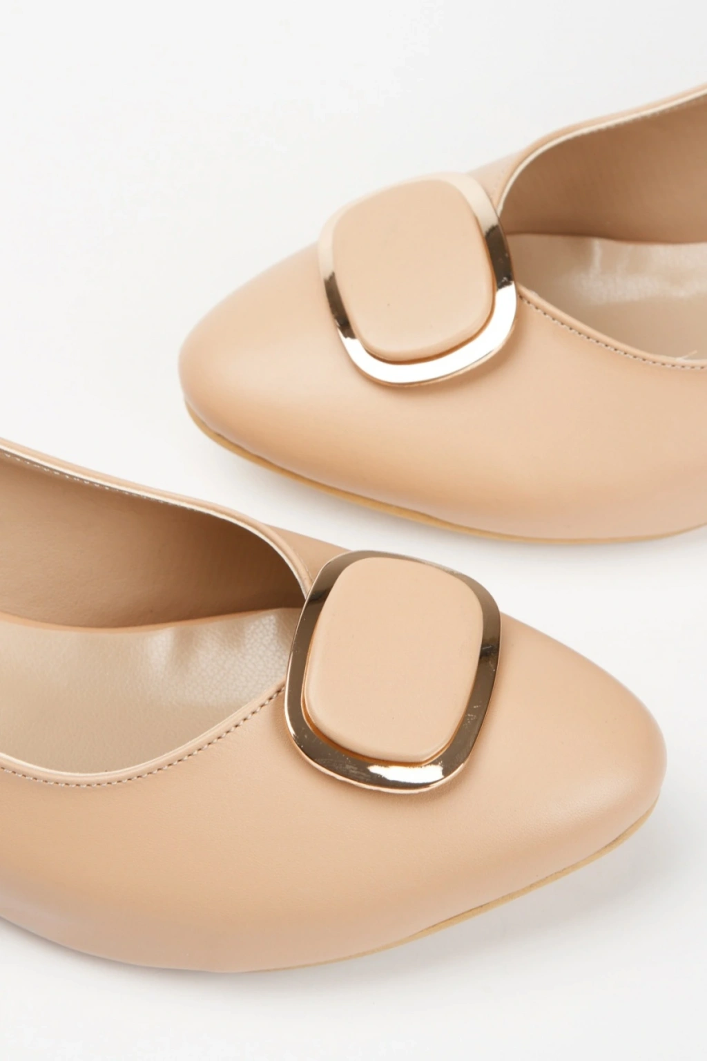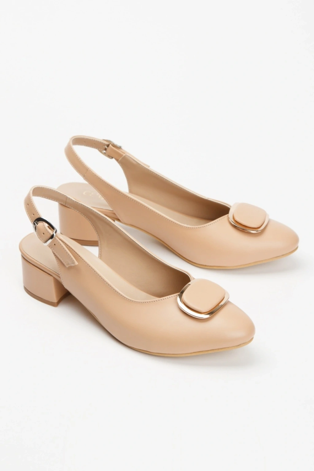 Kadın Nude Arkası Açık Kısa Kalın Topuklu Şık Toka Detaylı ve Rahat Stiletto