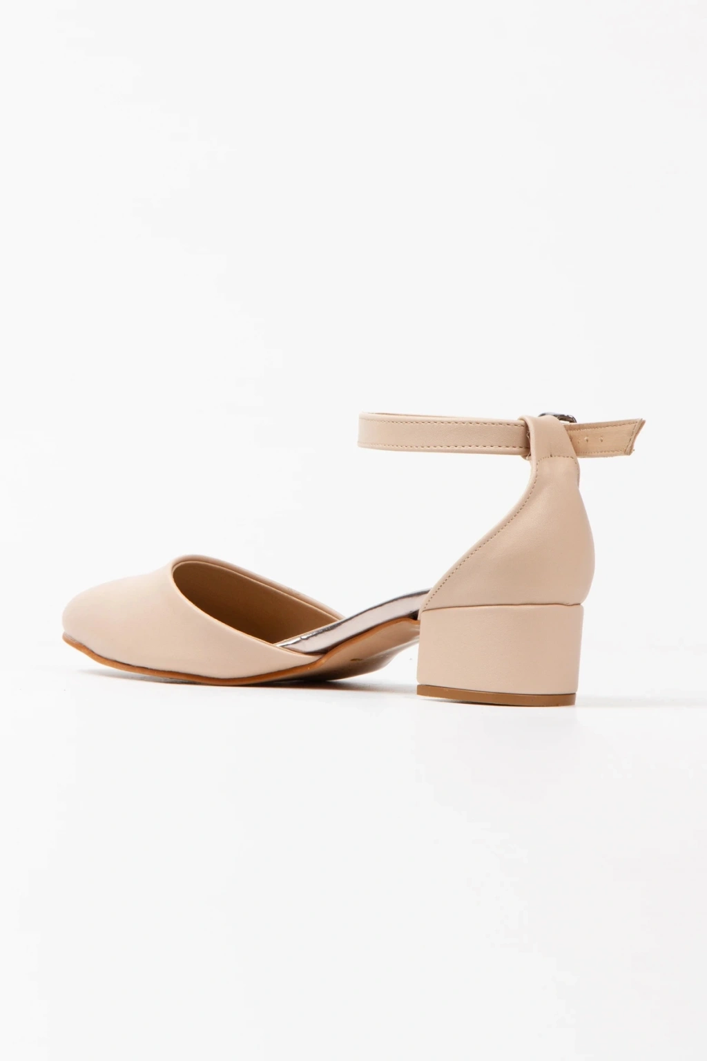 Kadın Nude Suni Deri Cilt Kısa Kalın Topuklu Rahat Karnı Yarık Ayakkabı Ve Şık Çanta Kombini