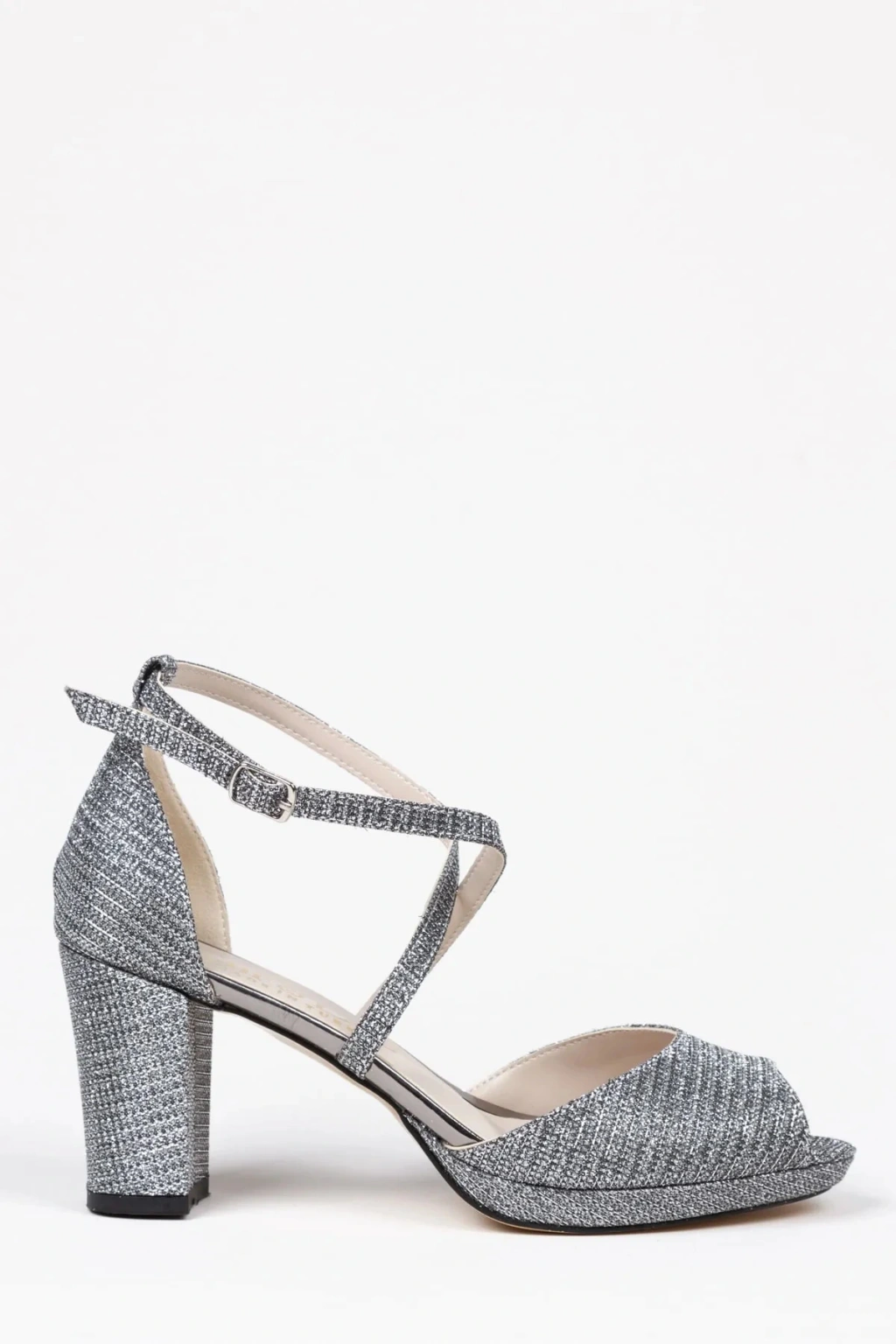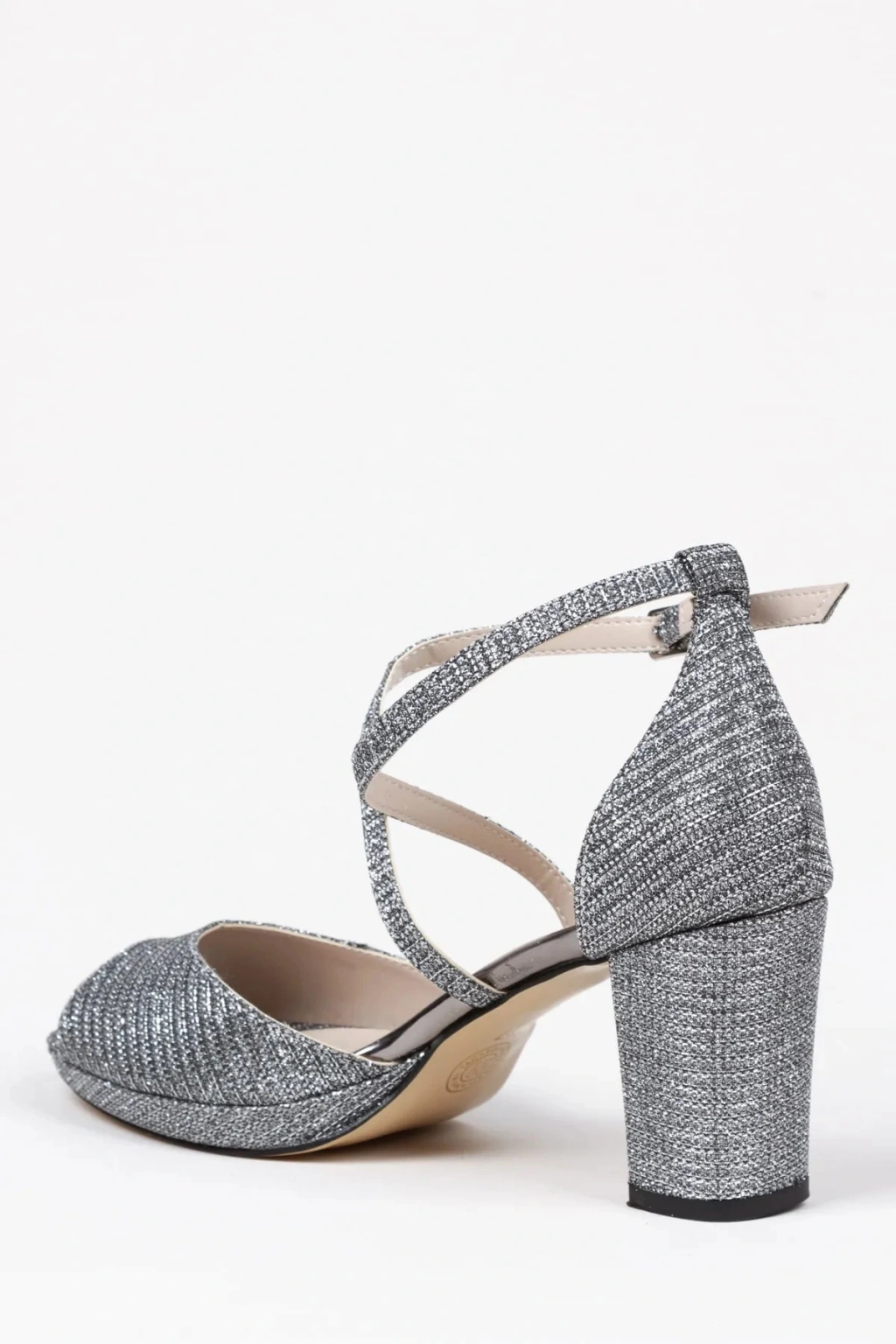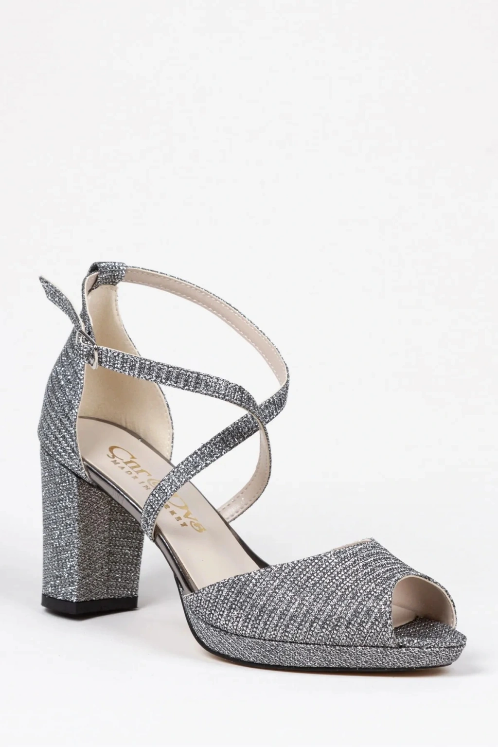Kadın Platin Arkası Kapalı Kalın Topuklu İnce Platformlu Çapraz Biyeli Karnıyarık Ayakkabı