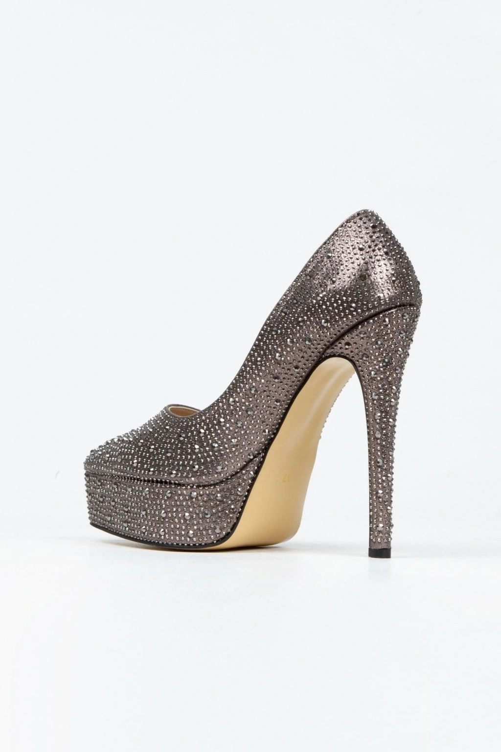 Kadın Platin İnci Taşlı Yüksek Platform Kapalı Burunlu İnce Topuklu Rahat ve Şık Ayakkabı