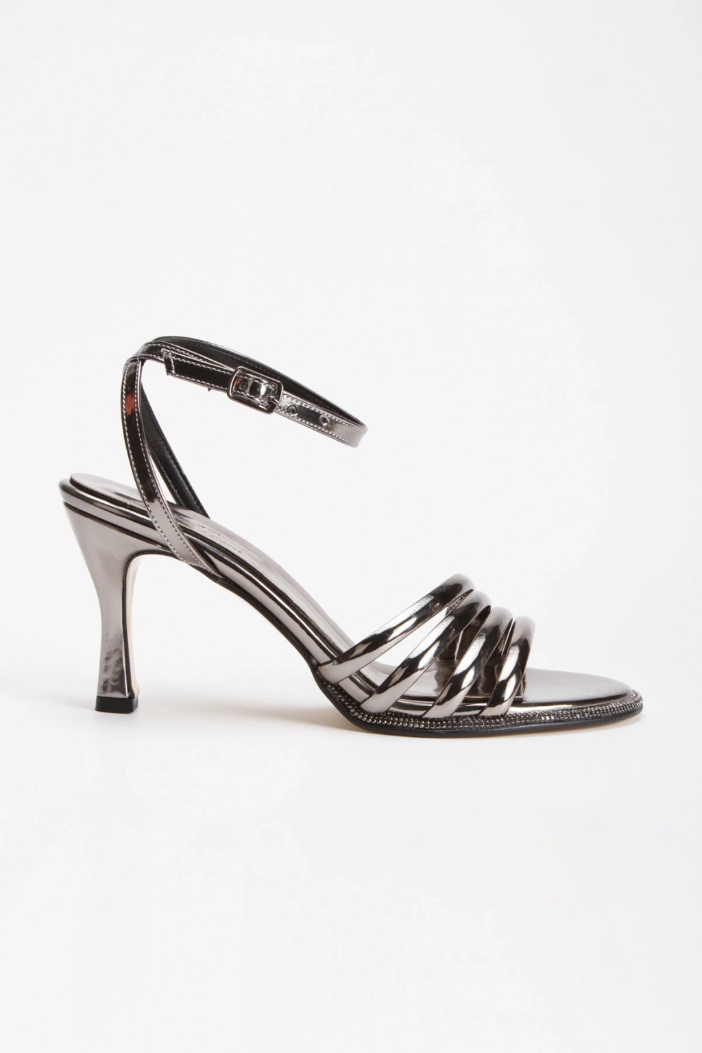 Kadın Platin Rugan Burun Şık Taş Detaylı 4 Sıralı Biyeli Abiye Ayakkabı