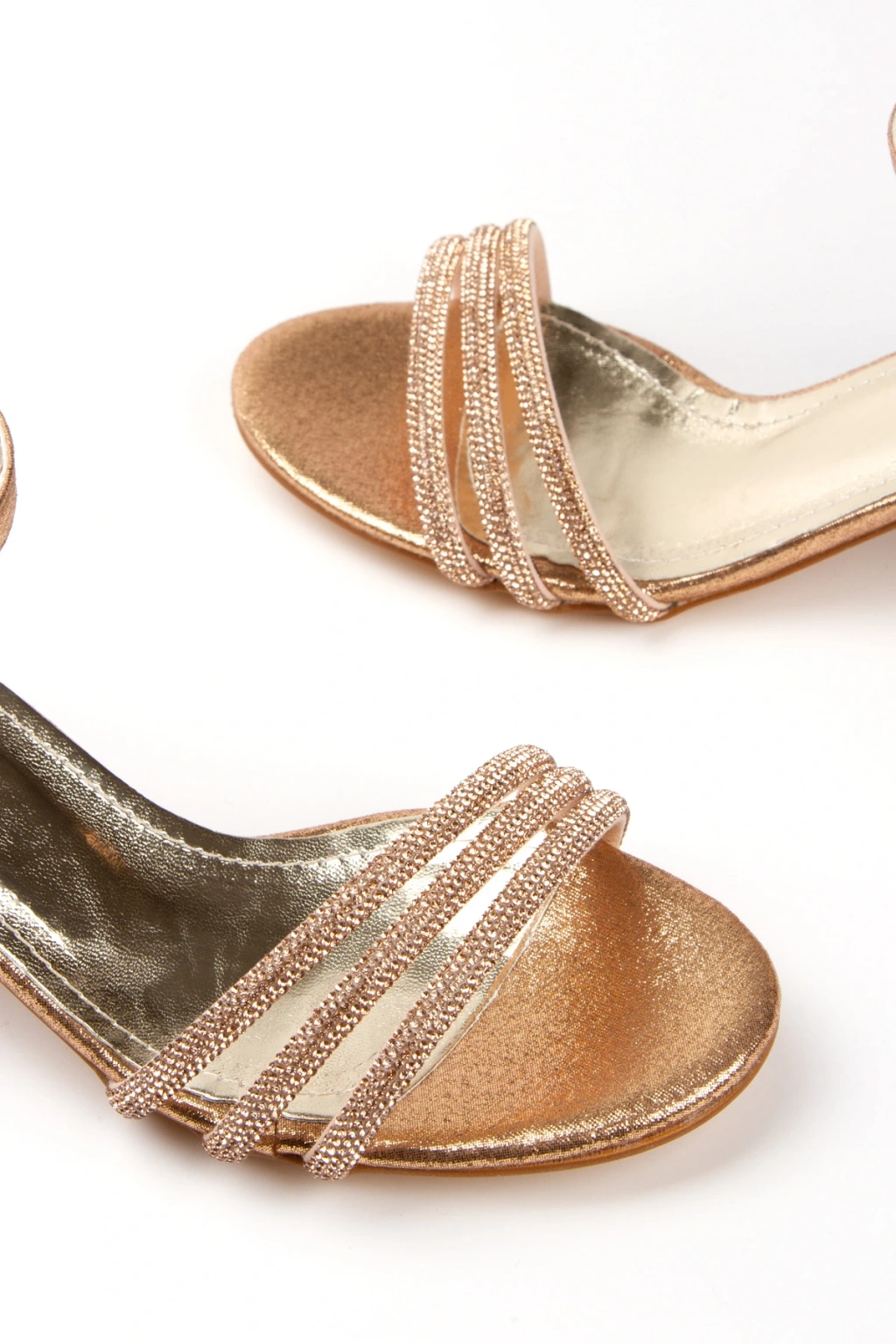 Kadın Rose Abiye 3 Sıralı Parlak Damla Taşlı Arkası Kapalı Yazlık Şık ve Rahat Ayakkabı
