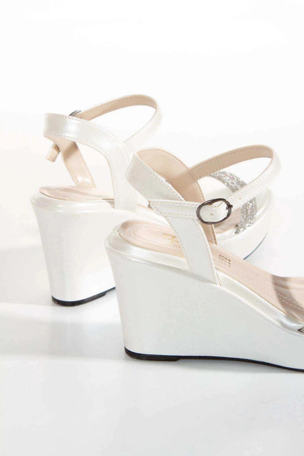 Kadın Sedef Suni Deri Cilt Parlak Damla Taşlı Dolgu Topuklu Rahat Şık Ayakkabı