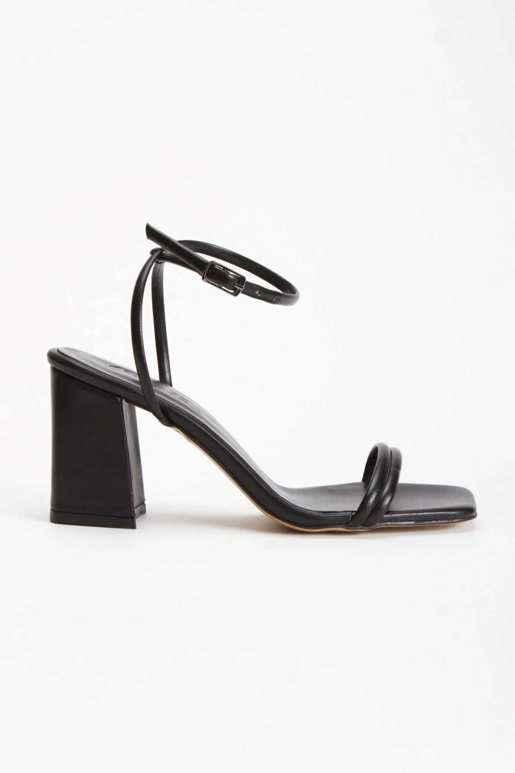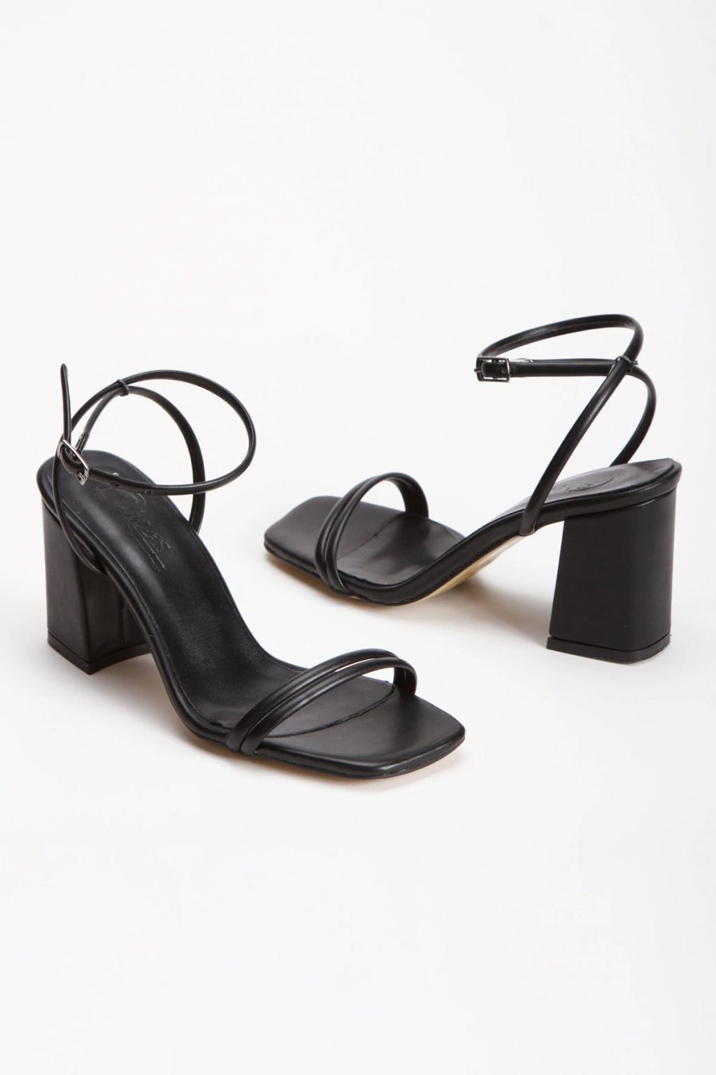 Kadın Siyah Cilt Çift Bantlı Bilekten Bağlamalı Kalın Topuklu Yazlık Ayakkabı