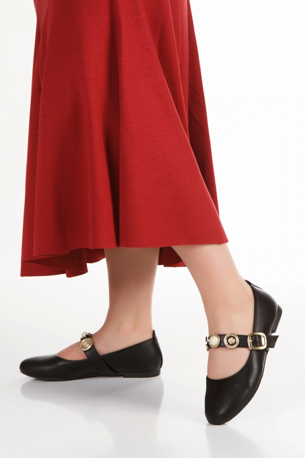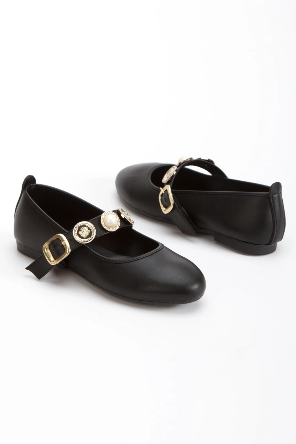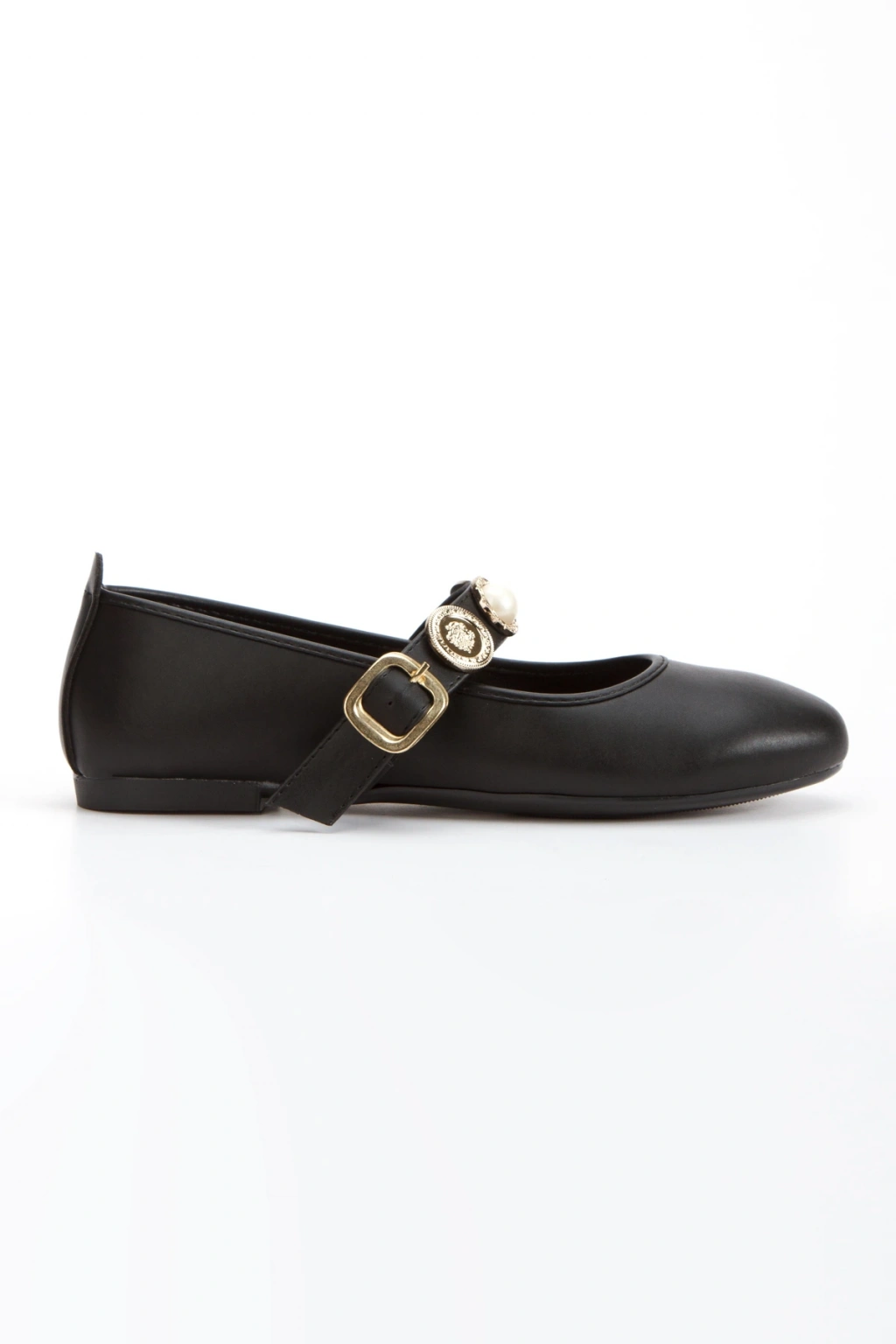 Kadın Siyah Düz Topuklu Şık Toka Detaylı Rahat Babet Ayakkabı