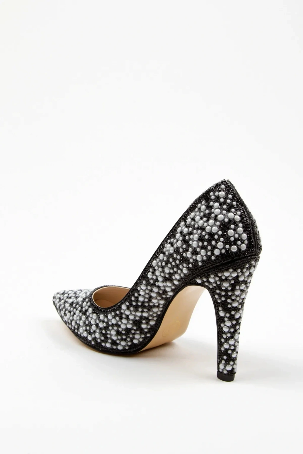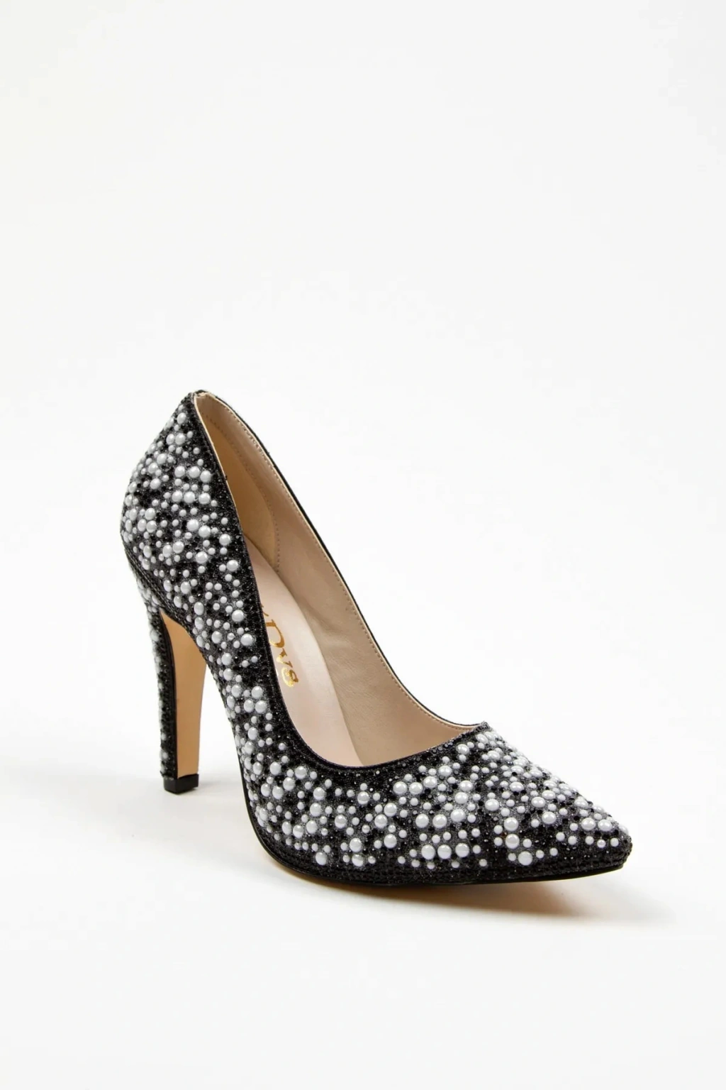 Kadın Siyah İnci Taşlarla Bezenmiş İNCE Topuklu Sivri Burunlu Şık Stiletto