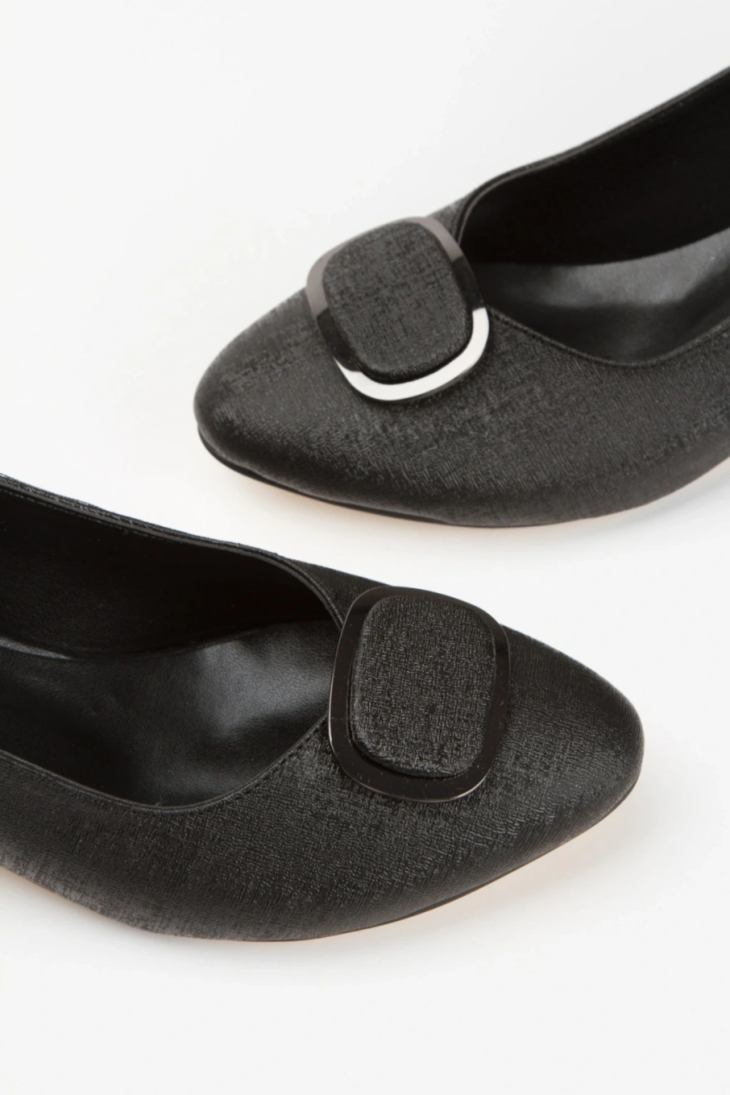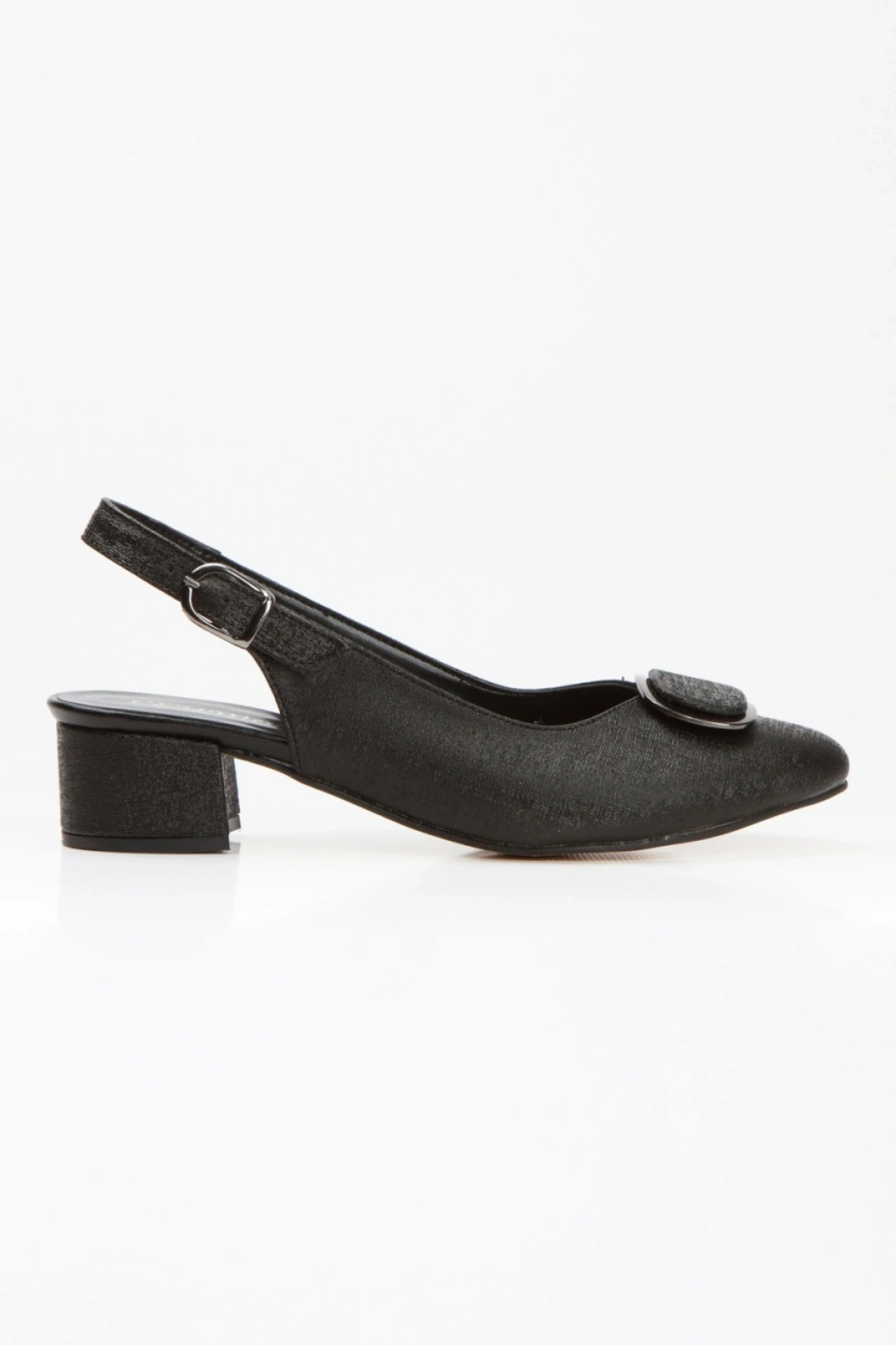 Kadın Siyah Parıltılı Arkası Açık Kısa Kalın Topuklu Şık Toka Detaylı ve Rahat Stiletto