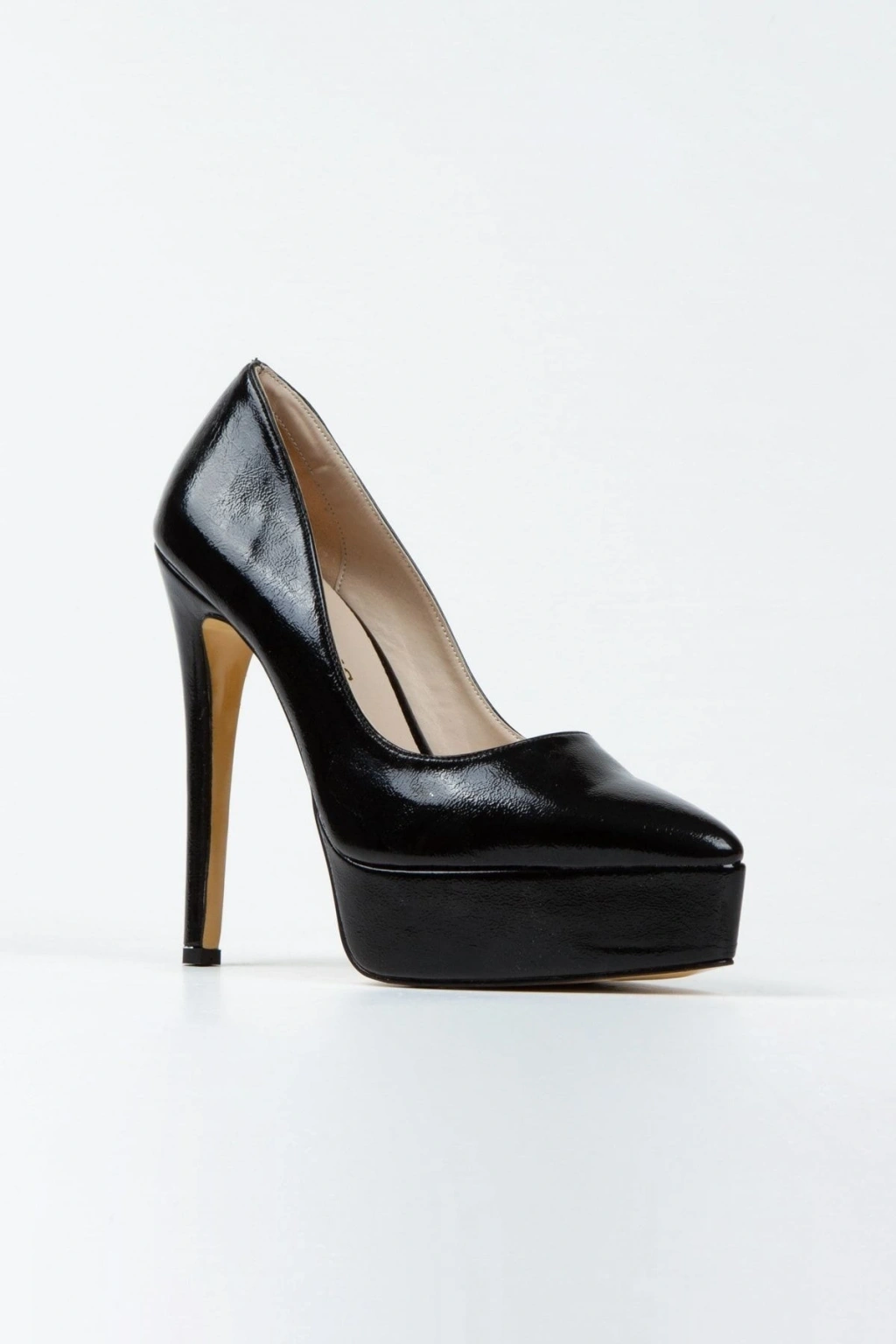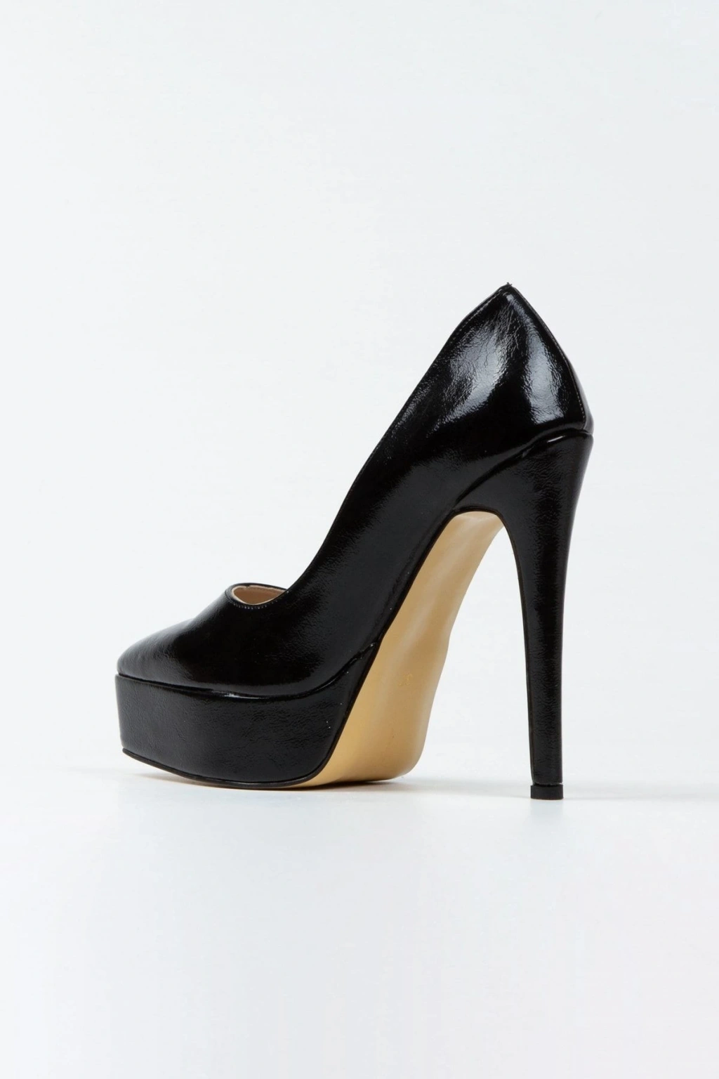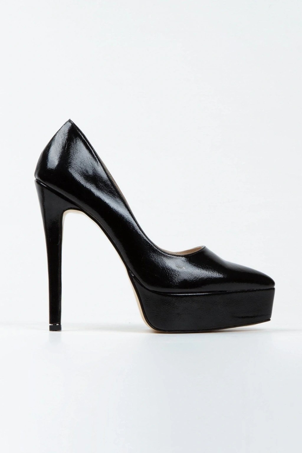 Kadın Siyah Rugan Yüksek Platform Kapalı Burunlu İnce Topuklu Rahat ve Şık Ayakkabı