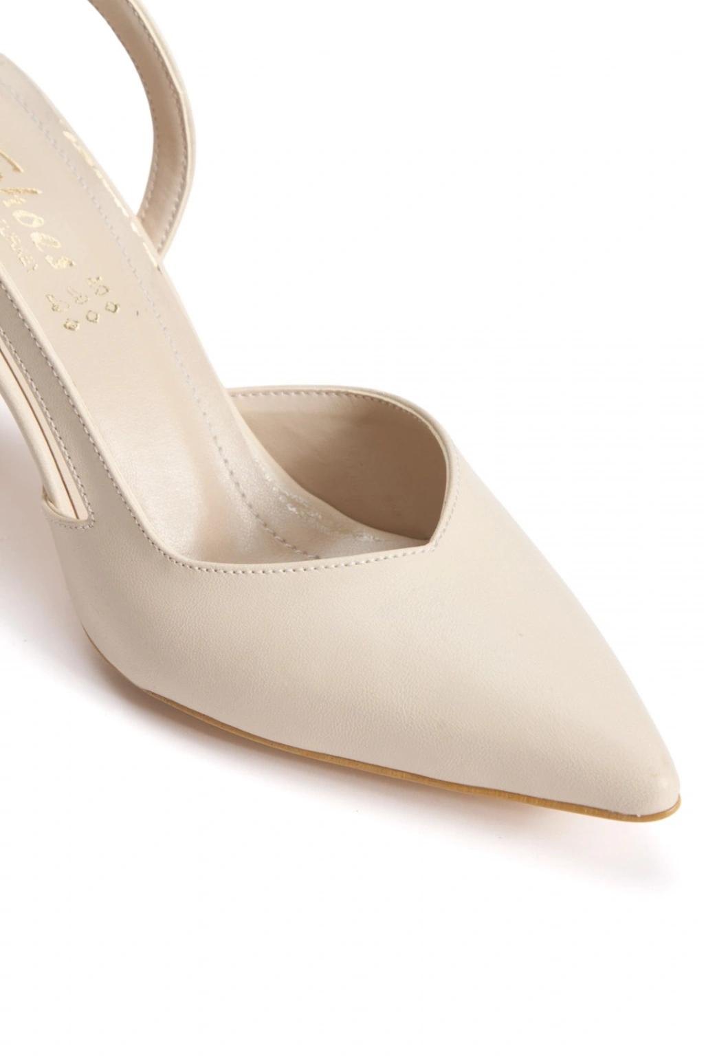 Kadın Bej Suni Cilt İnce Topuklu Sivri Burunlu Arkası Açık Şık Abiye Stiletto
