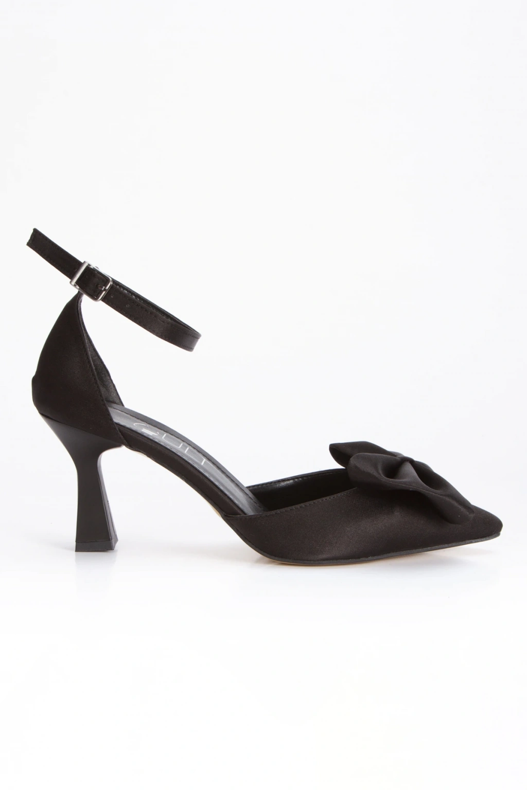 Kadın Siyah Saten Şık Fiyonklu Kısa İnce Topuklu Sivri Burunlu Şık Stiletto Ayakkabı