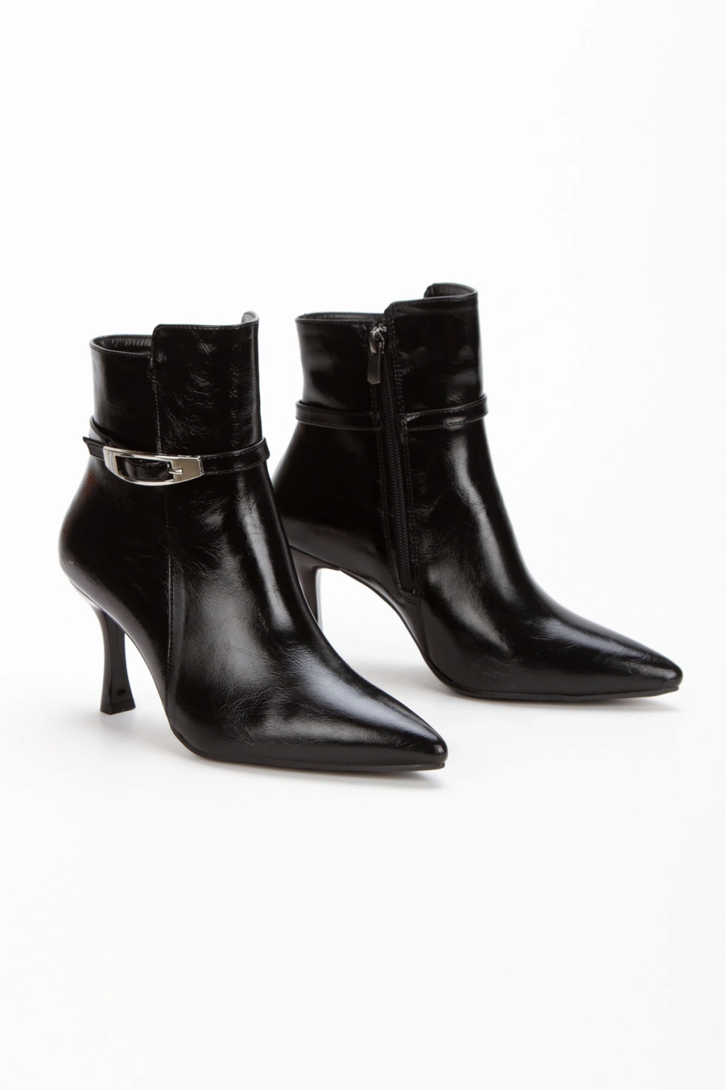 -Ürünün topuk boyu :8 cm'dir.; - Şık ve modern tasarımıyla her ortamda dikkat çeken siyah rugan bot, günlük kullanım için idealdir.; - Sivri burun tasarımı ile feminen bir görünüm sunarken, ince topuk yapısı zarif bir duruş sağlar.; - Rahat yapısı sayesinde uzun süreli kullanımlarda bile ayakların konforunu korur.; - Toka detayı ile hem şıklığı hem de pratikliği bir arada sunar; kolay giyip çıkarmayı mümkün kılar.; - Renkleri ve materyali sayesinde kolayca kombinlenebilir ve her türlü kıyafetle uyum sağlar.;