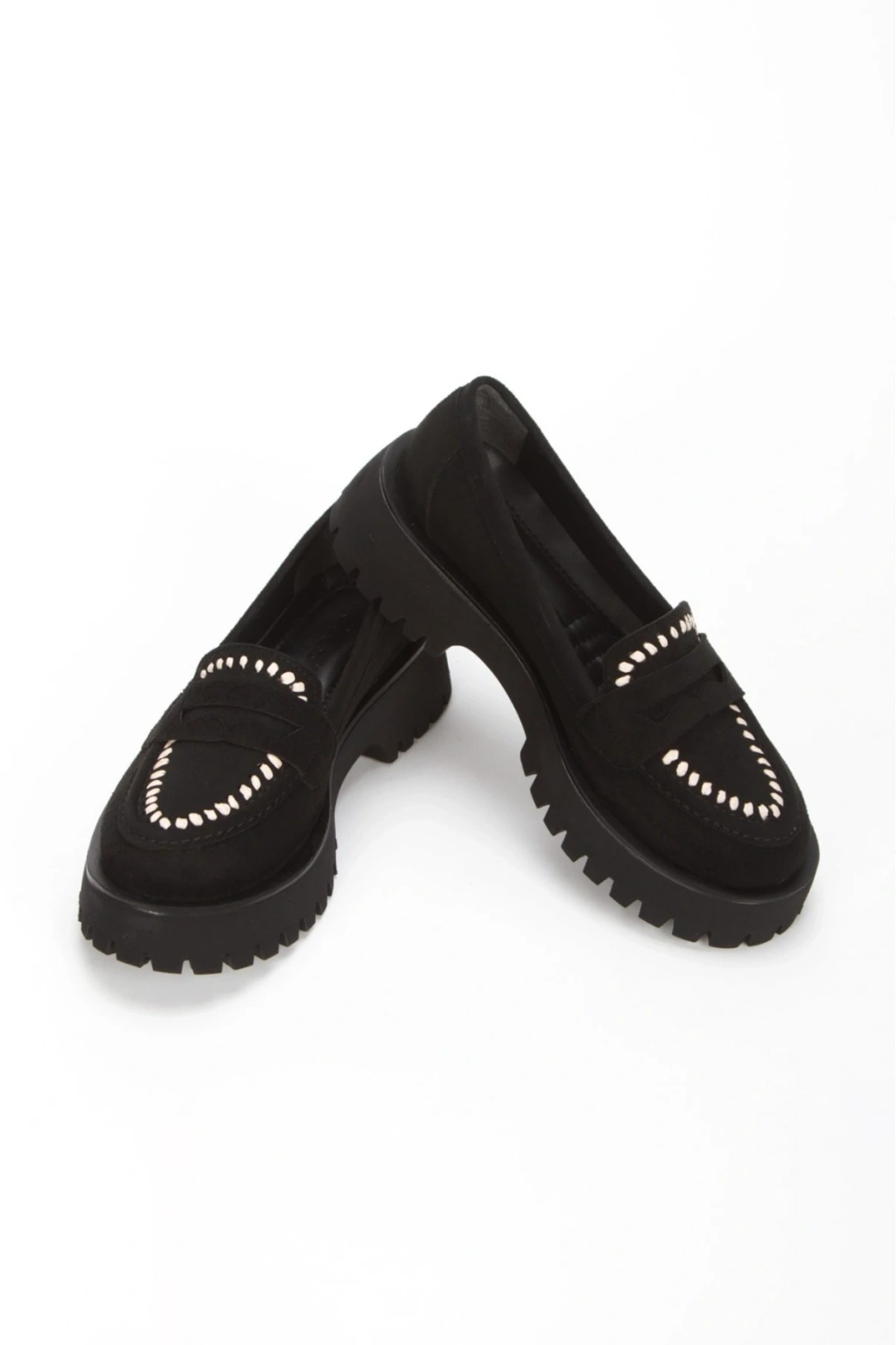 Kadın Siyah Süet Kalın Tabanlı Rahat Loafer Ayakkabı