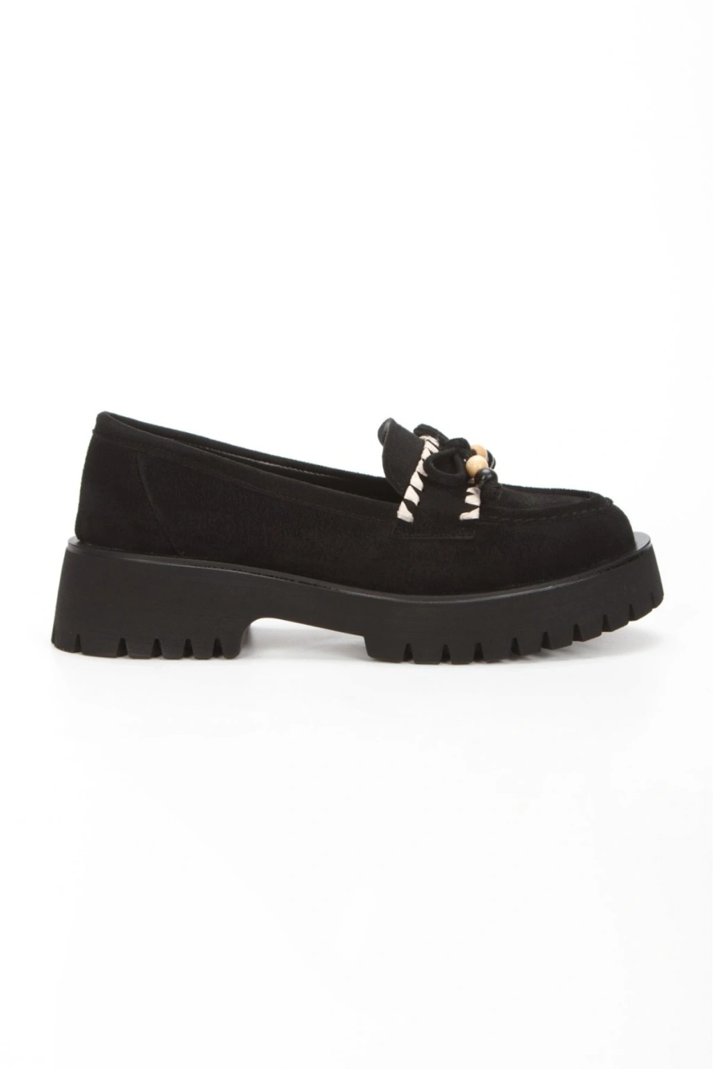 Ürün 1. Sınıf Ayakkabılık Kışlık Suni Deri Malzemeden Üretilmiştir.; Ürünün Topuk Yüksekliği 4 cm'dir; ; Ürünü Günlük - Klasik Kıyafetleriniz ile Sokak Modasında, Ofis Stilinizde Size Eşlik Ederek Elbiselerinize Rahatlıkla Kombinleyebilirsiniz.; Ürün Tam ve Normal Kalıptır.; Ürünün Tabanı Poliüretandır.; Kırılmaya ve Esnemeye Dayanıklıdır.; ; Ürün % 100 Yerli Üretim ve El İşçiliğidir.; ; Ürün Türkiye'de Üretilmiştir.; Ürünlerimize Online Alışverişlerinize Özel Fiyatlardan Yararlanarak Hemen Sahip Olabilirsiniz!; - Günlük kullanım için ideal, rahat ve şık tasarımıyla dikkat çeken kadın loafer ayakkabı.; - Siyah süet materyal, hem klasik hem de modern bir görünüm sunar.; - Suni deri dış materyal ile dayanıklılık ve uzun ömürlü kullanım vaat eder.; - Slip-on bağlama şekli sayesinde kolay giyilip çıkarılabilir; pratiklik sağlar.; - Kış sezonuna uygun olarak tasarlanmıştır; soğuk havalarda ayaklarınızı sıcak tutar.; - Yuvarlak burun tipi ile konforlu bir yürüyüş deneyimi sunar.; - Düz desenli tasarımıyla sade ve zamansız bir stil oluşturur.; - Türkiye'de üretilmiş olup yerel iş gücüne katkıda bulunur.; - Kutulu şekilde gönderilir, hediye olarak da idealdir.;