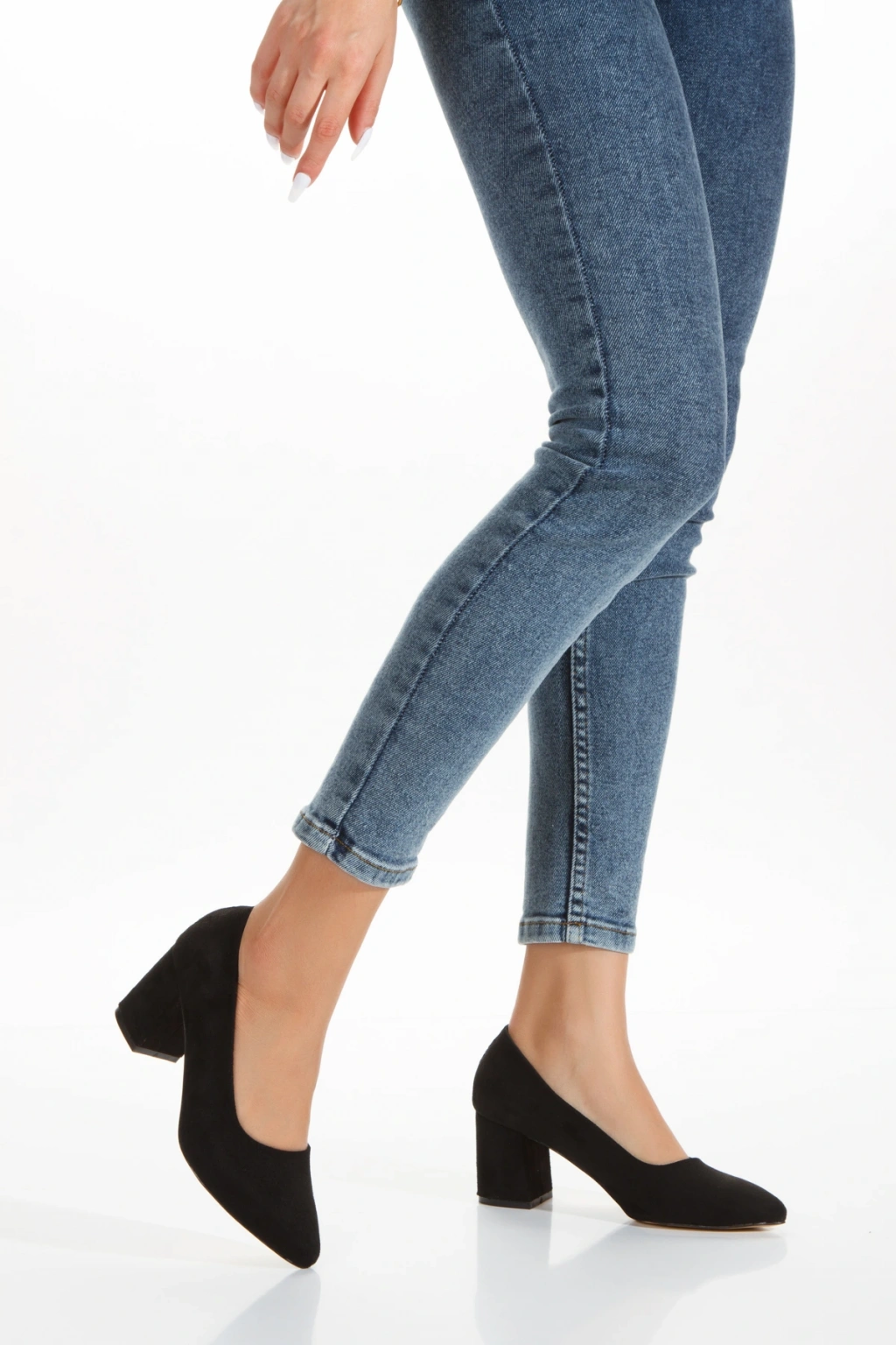 Kadın Siyah Süet Stiletto Kısa Kalın Topuklu Şık Stiletto