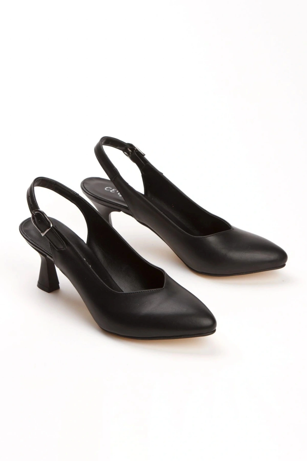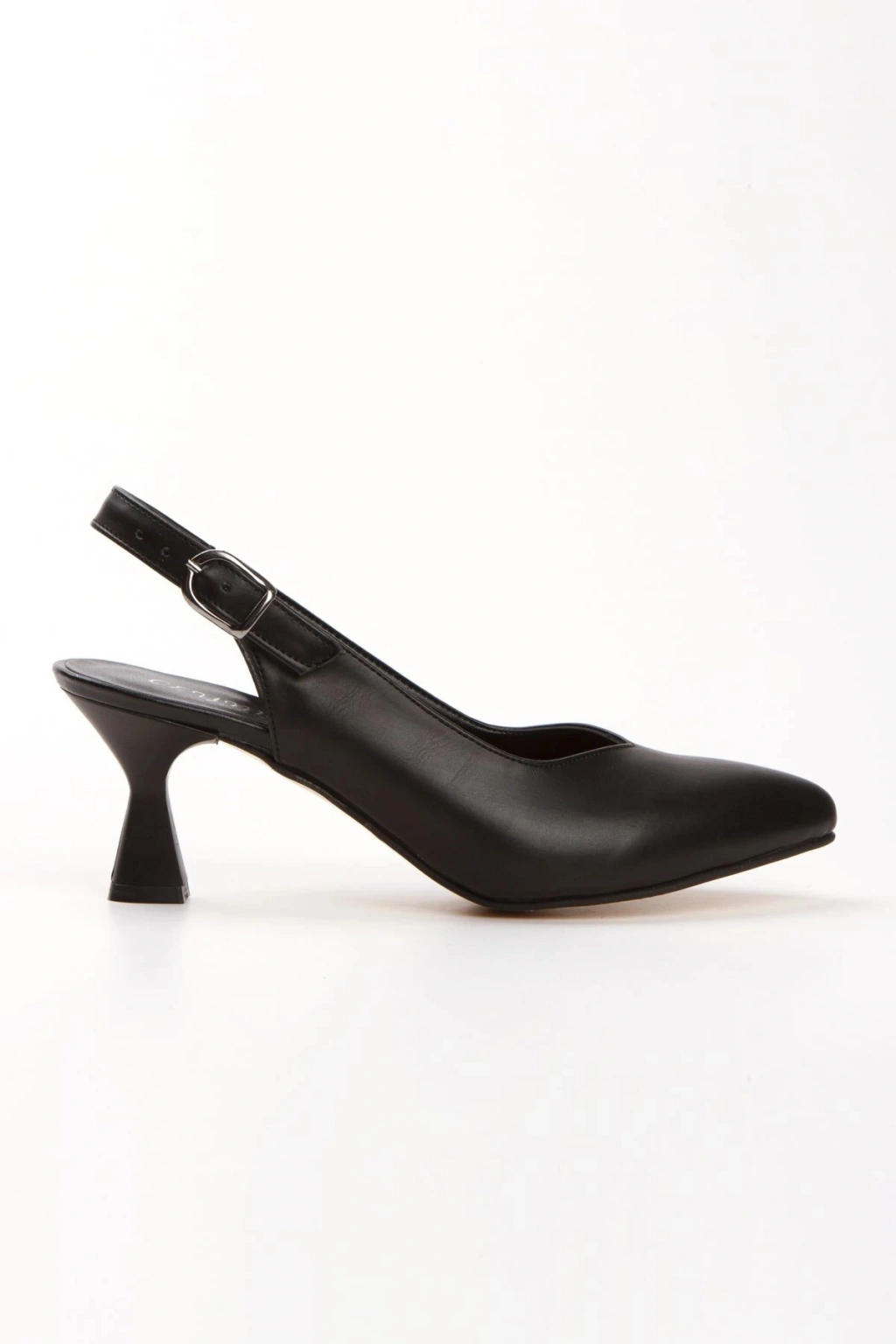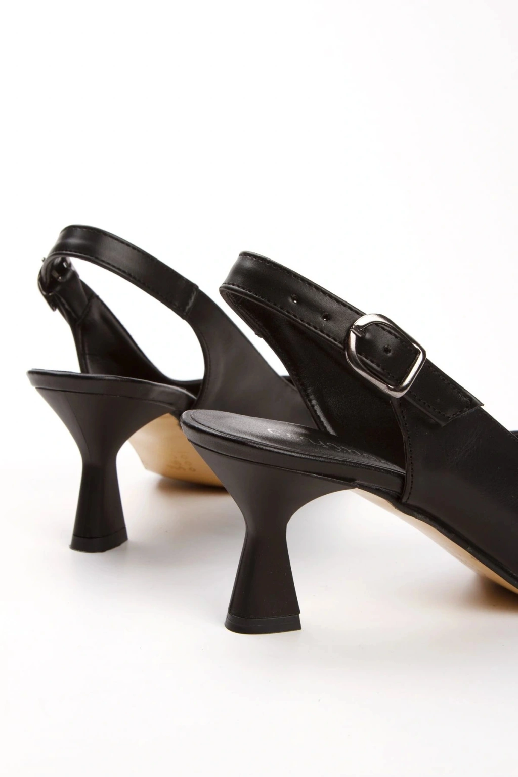 Kadın Siyah Suni Deri Cilt Arkası Açık 6 Cm Ince Topuklu Şık Ve Rahat Stiletto