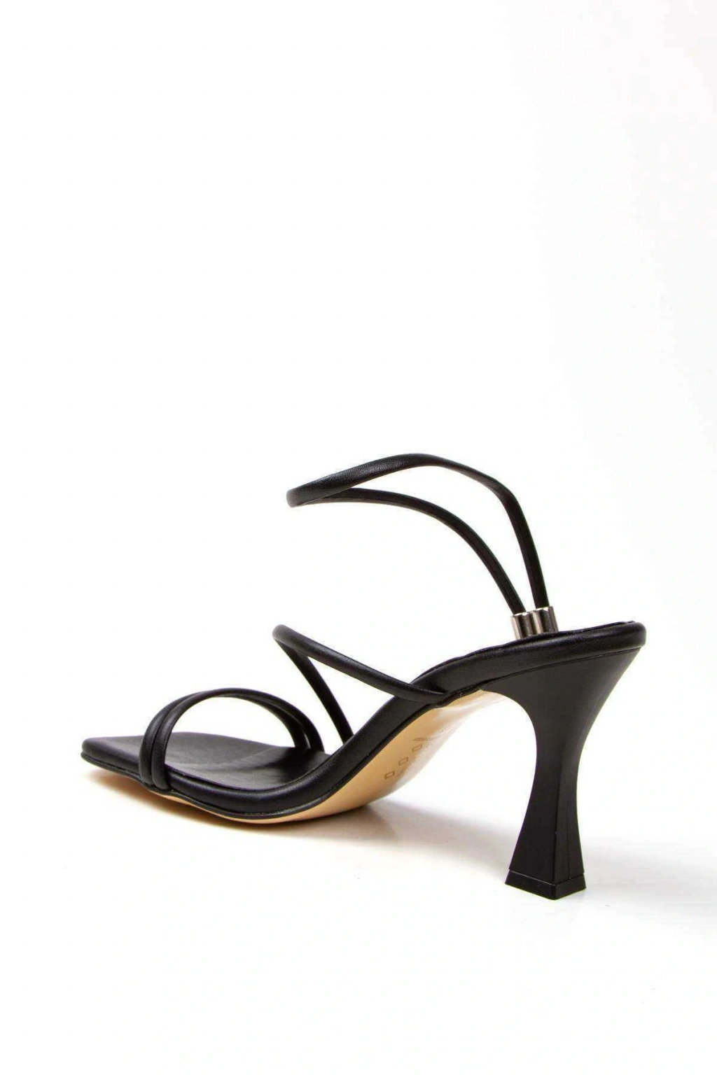 Kadın Siyah Suni Deri Cilt Kelebek Toka Detaylı Bilekten Ayarlamalı Kadeh Topuklu Ayakkabı