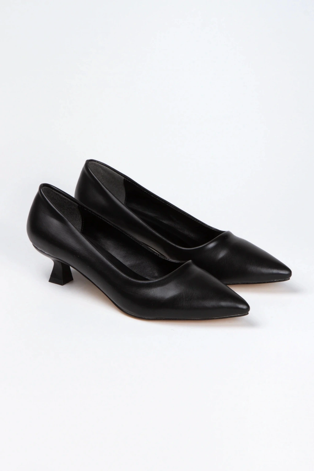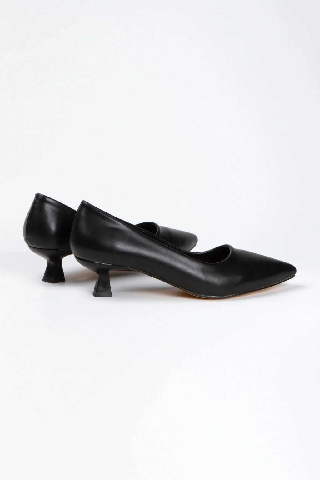 Kadın Siyah Suni Deri Cilt Kısa Kadeh Topuklu Rahat Ve Şık Stiletto