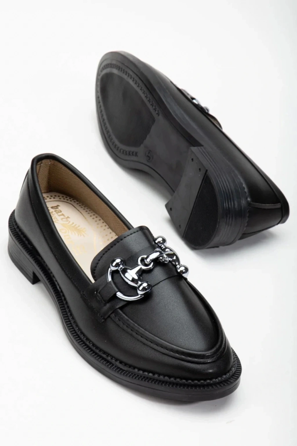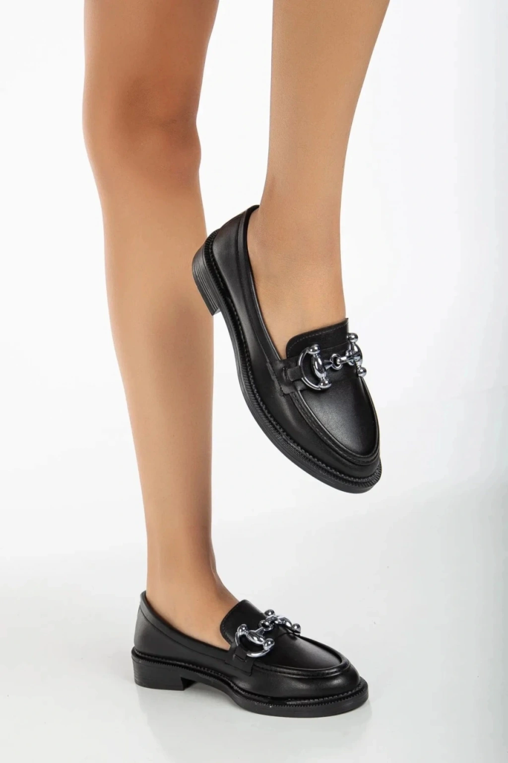 Kadın Siyah Suni Deri Cilt Şık Toka Detaylı Rahat Loafer Ayakkabı