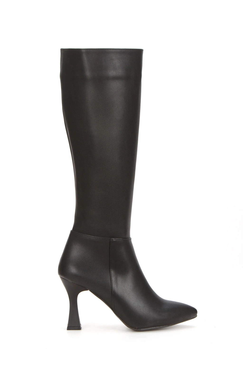 Kadın Siyah Suni Deri Cilt Sivri Burunlu İnce Topuklu Rahat Çizme