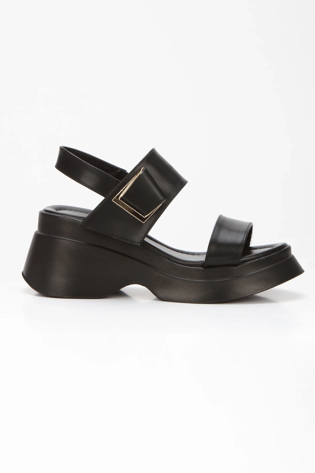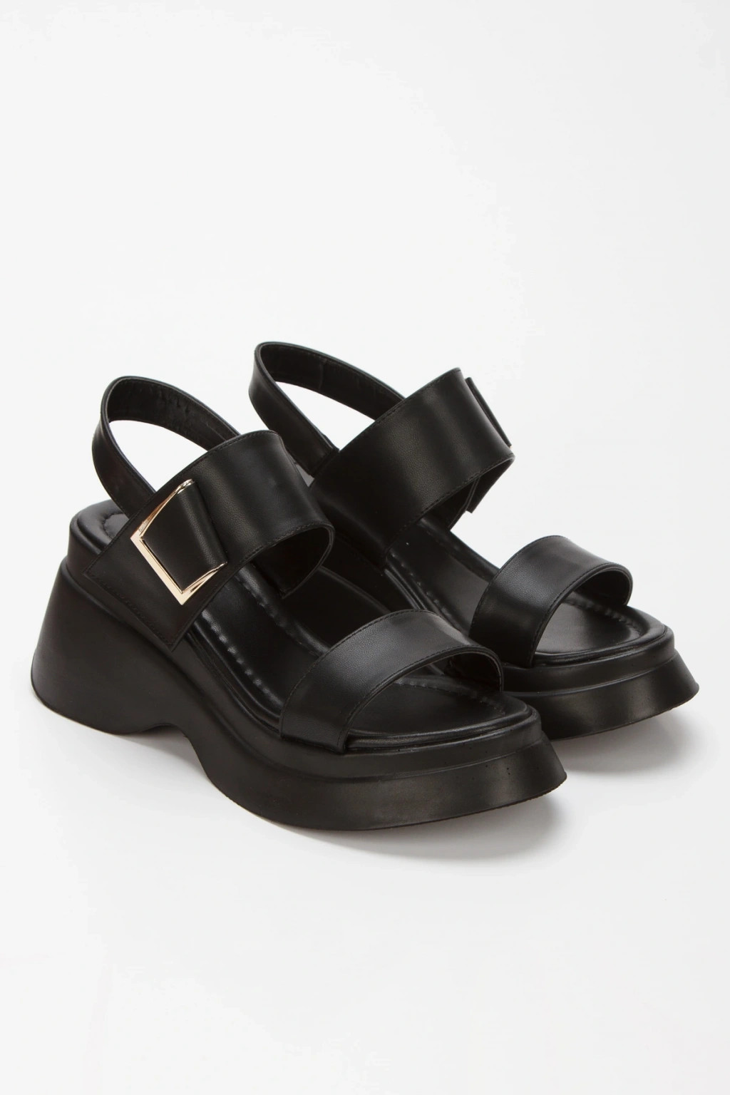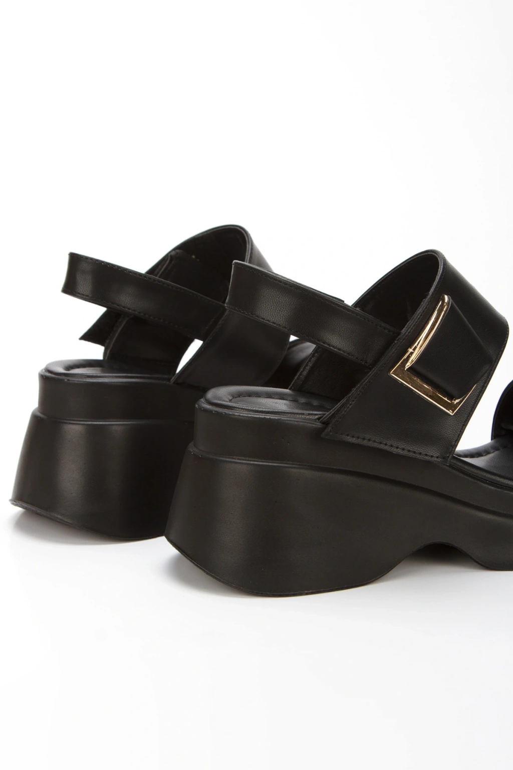 Kadın Siyah Suni Deri CiltTek Bant Detaylı Cırt Cırtlı Dolgu Tabanlı Şık Yazlık Ayakkabı