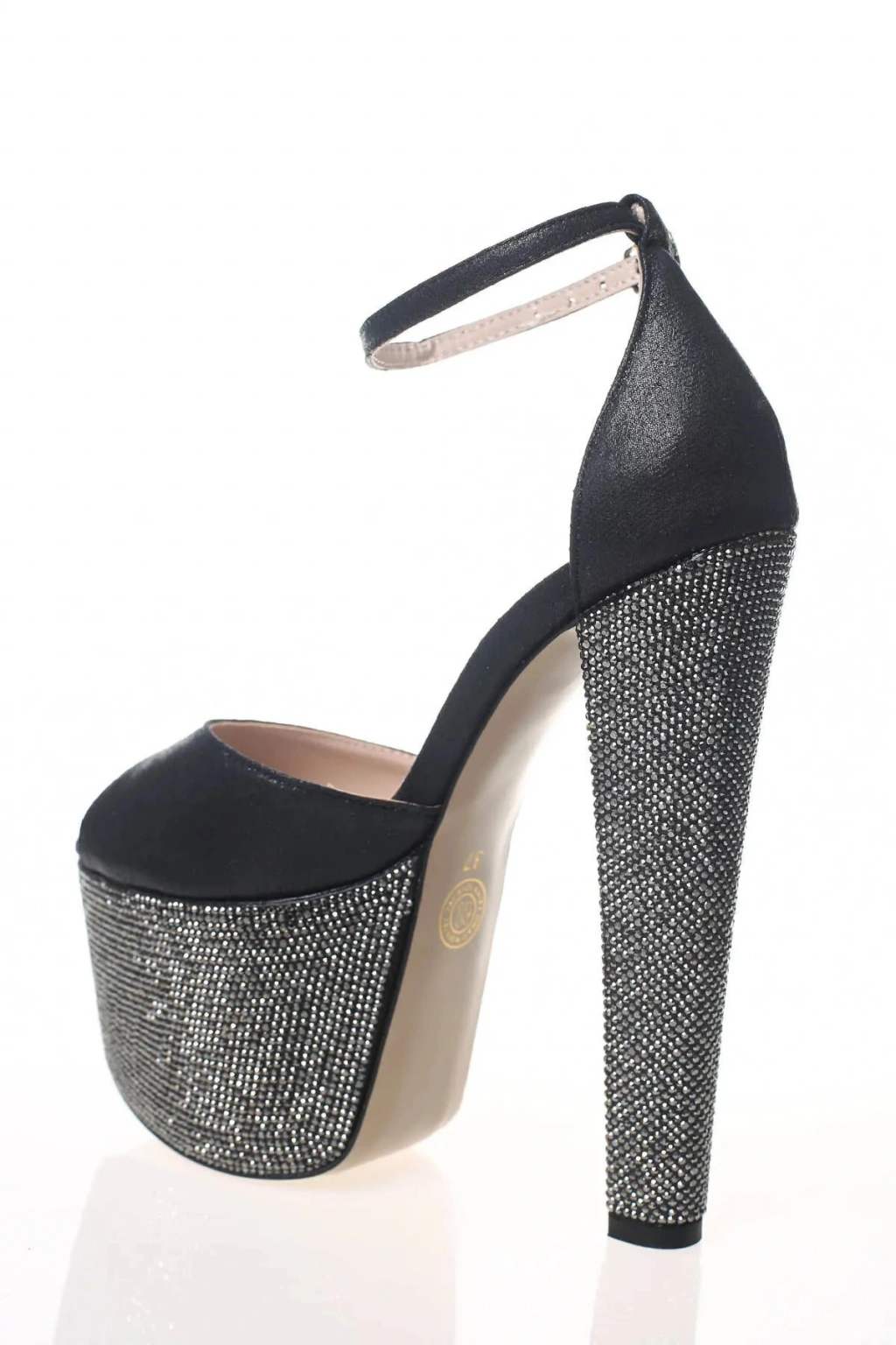 Kadın Siyah Taşlarla Bezenmiş Yüksek Platform ve Yüksek Topuklu Arkası Kapalı Şık Abiye Ayakkabı